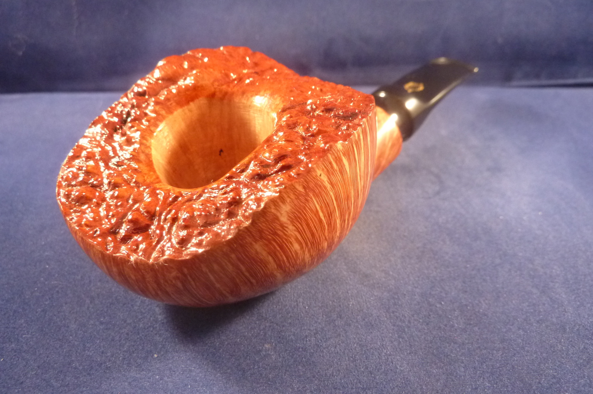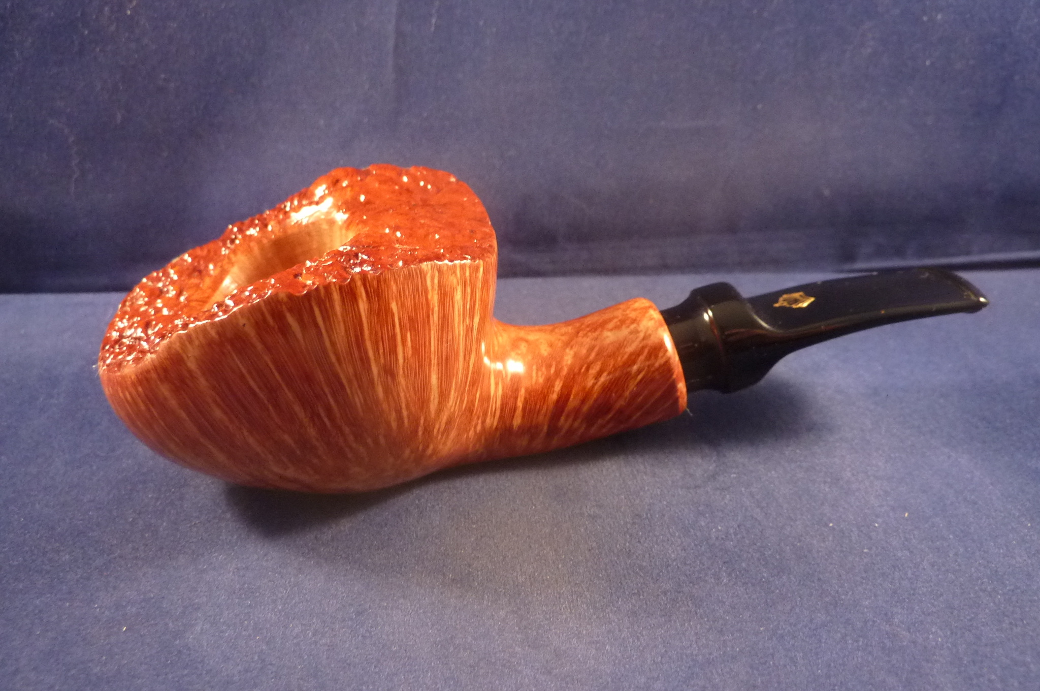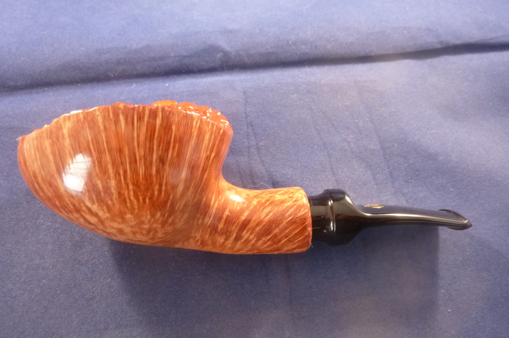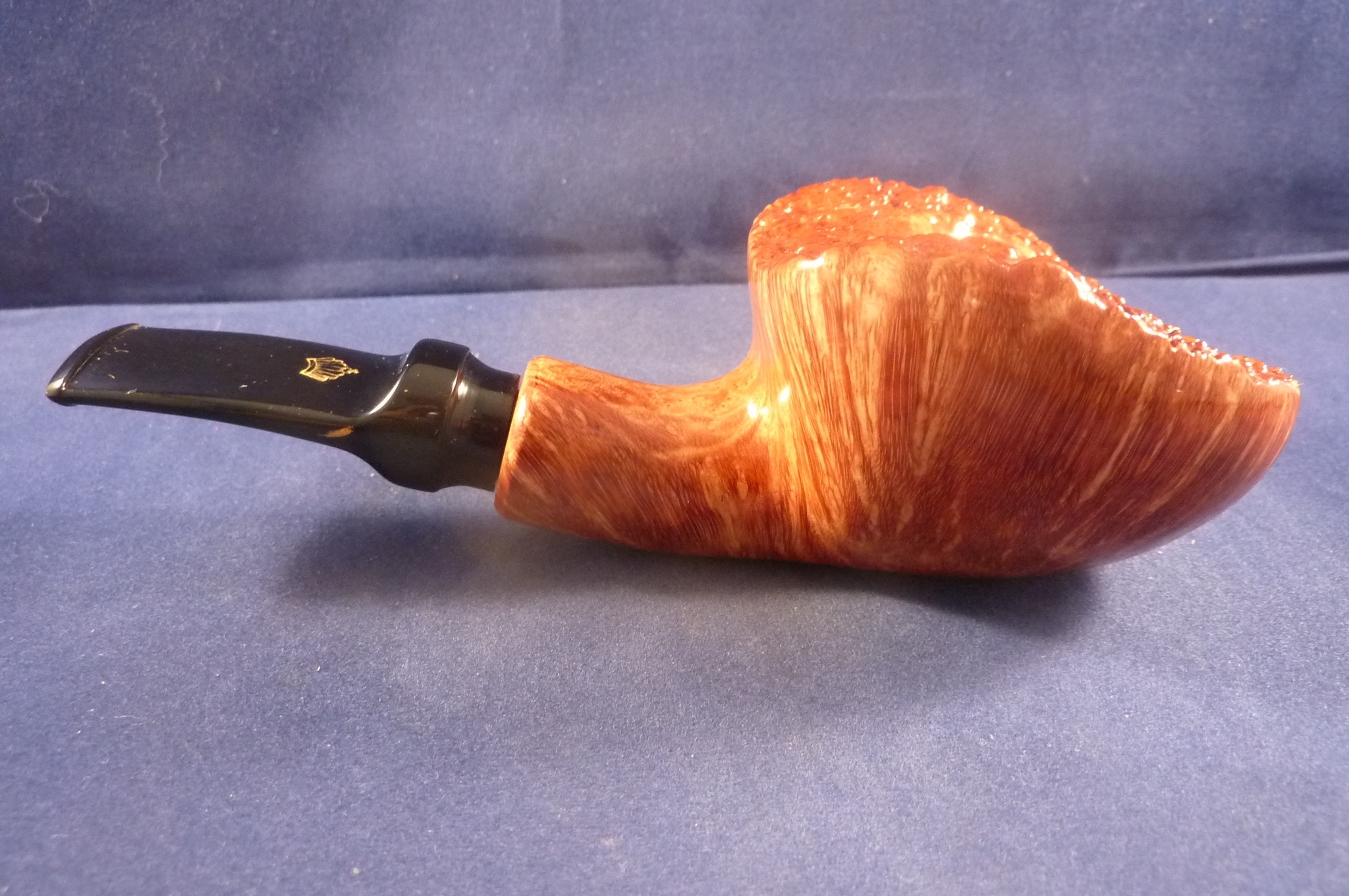This is a brand new briar pipe in a light finish made by L'Anatra in Italy. This Italian pipe has really great colours and grains. Acrylic mouthpiece, 9 mm. filter.