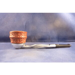 Straight Falcon pipe with a twisted chrome stem and a bowl in rusticated finish.