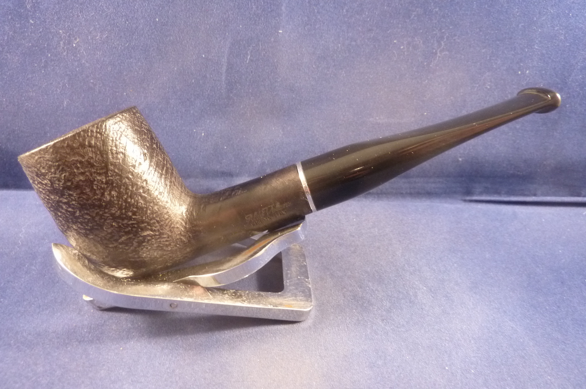 This is a brand new briar pipe made by Aldo Velani in Italy. Acrylic mouthpiece, 9 mm. filter.