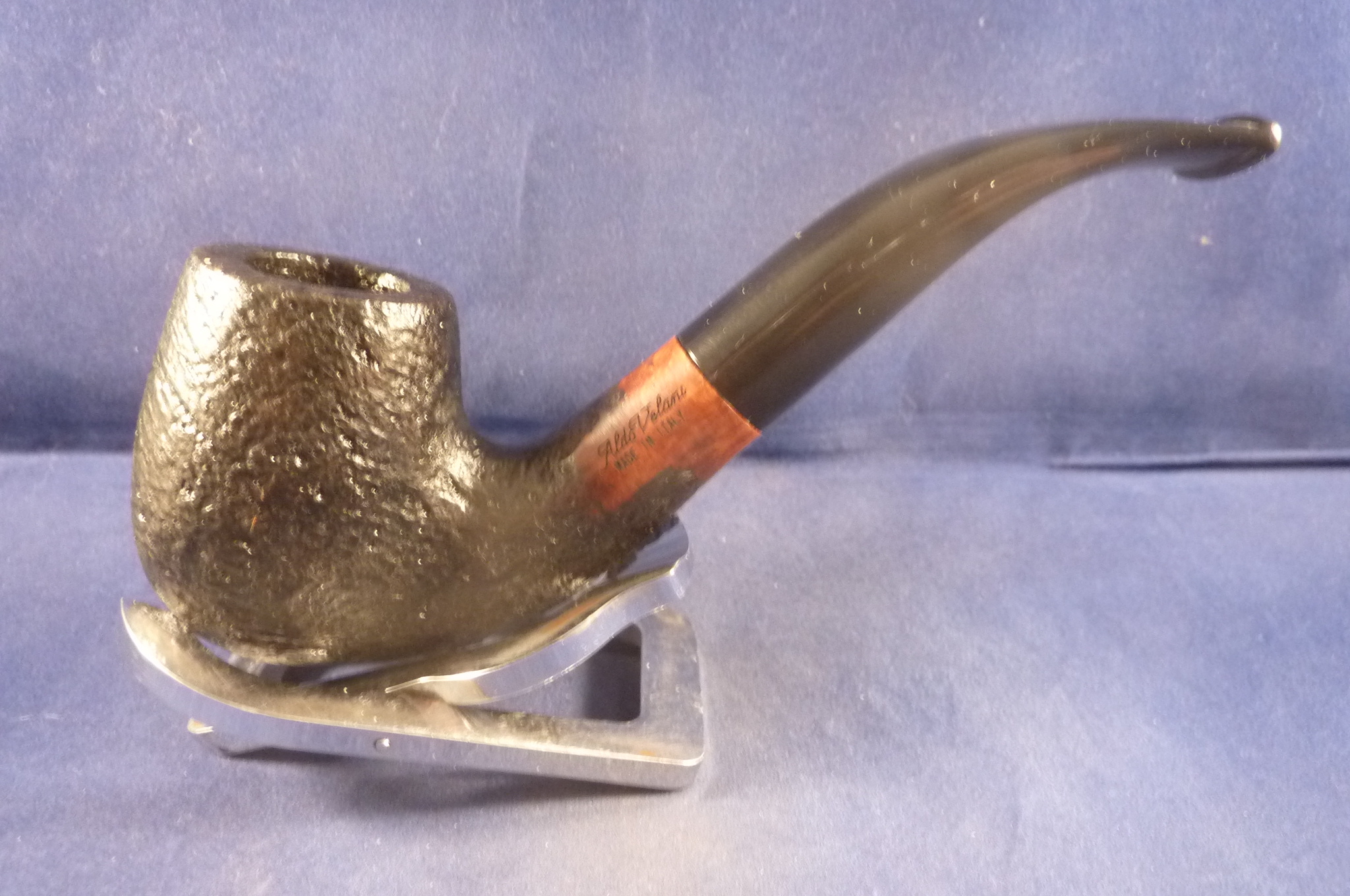 This is a brand new briar pipe made by Aldo Velani in Italy. Acrylic mouthpiece, 9 mm. filter.