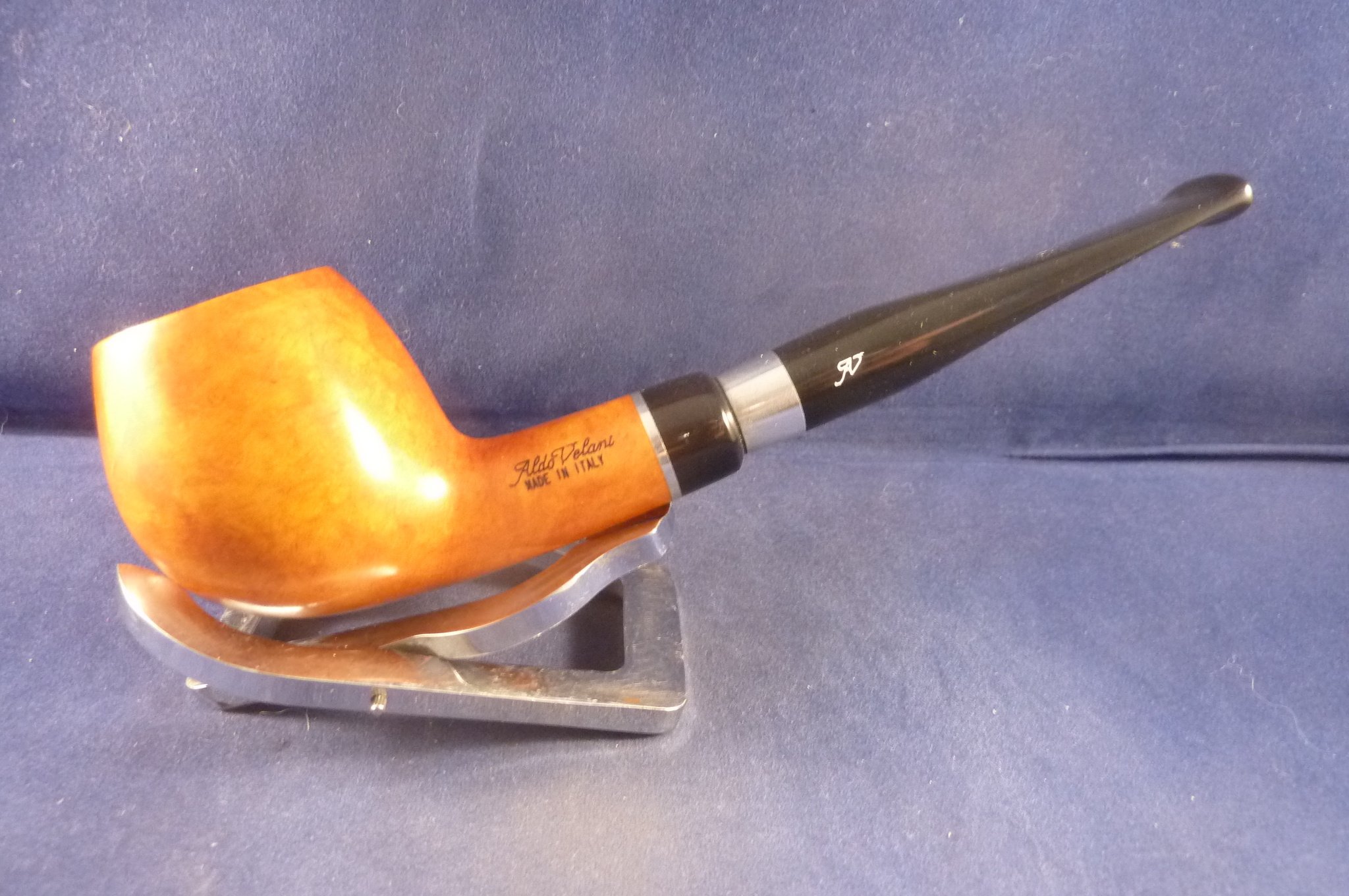 This is a brand new briar pipe made by Aldo Velani in Italy. Acrylic mouthpiece, 9 mm. filter.