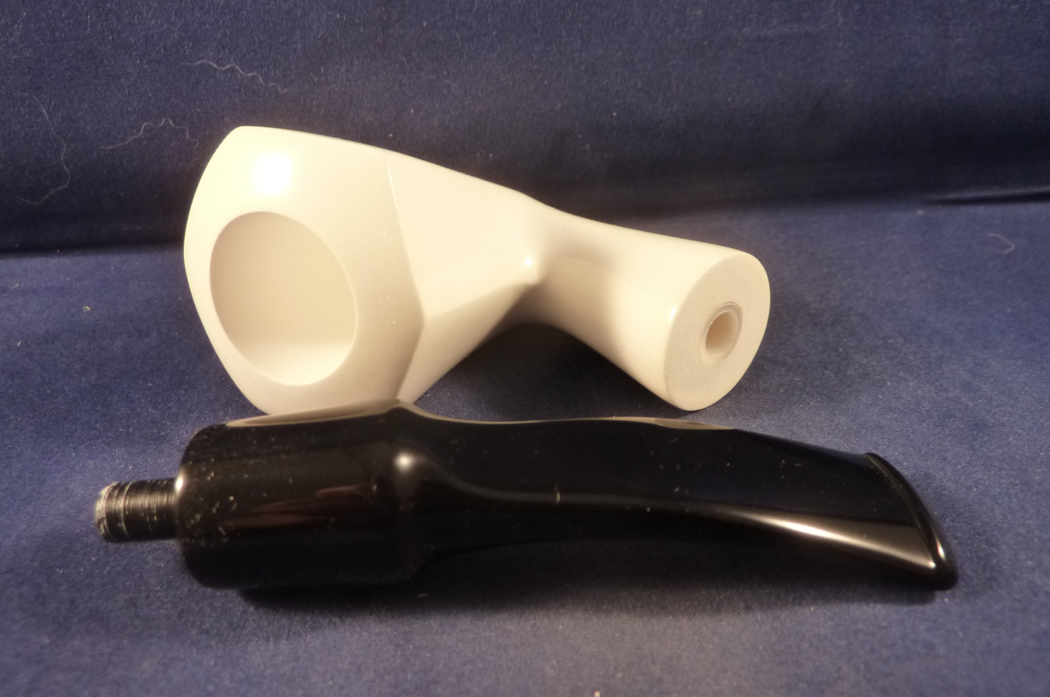 Smooth meerschaum pipe carved from a block by Altinay in Turkey. Acrylic mouthpiece, without filters.