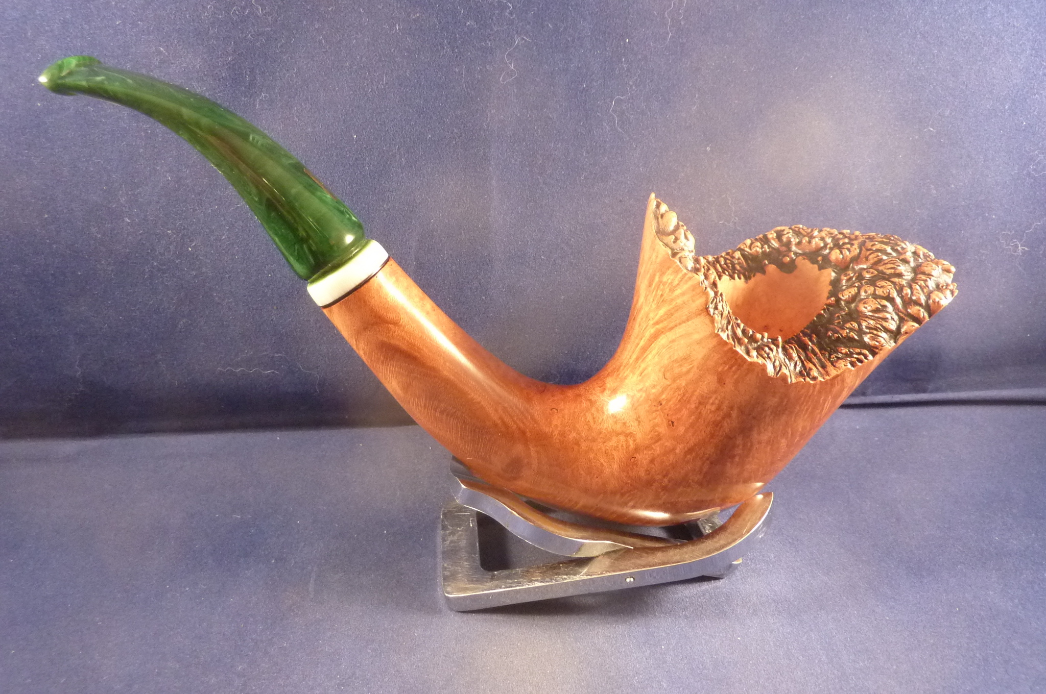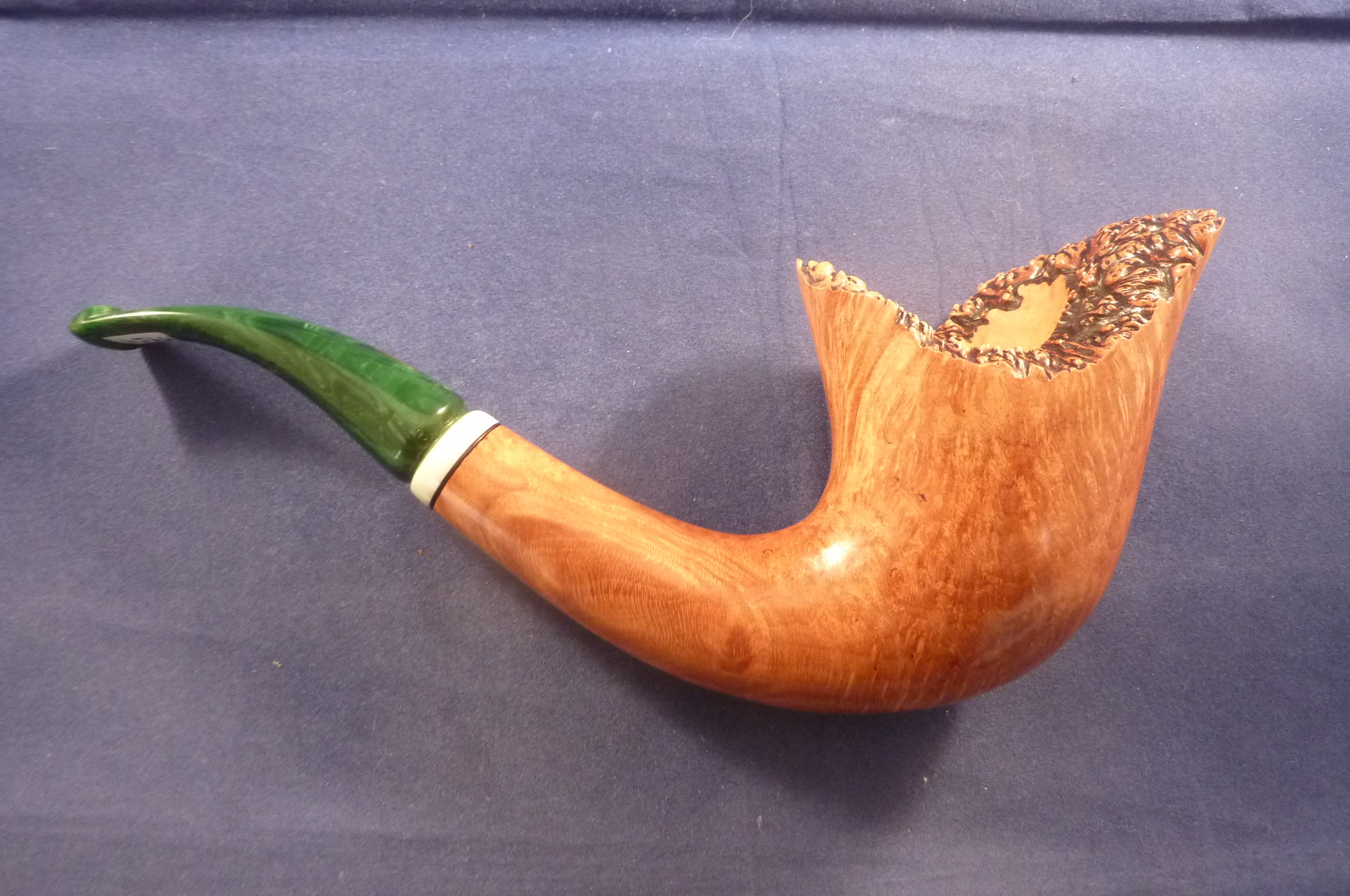 Giant briar pipe in a natural finish made by Luigi Viprati in Italy. Acrylic mouthpiece, 9 mm. filter.