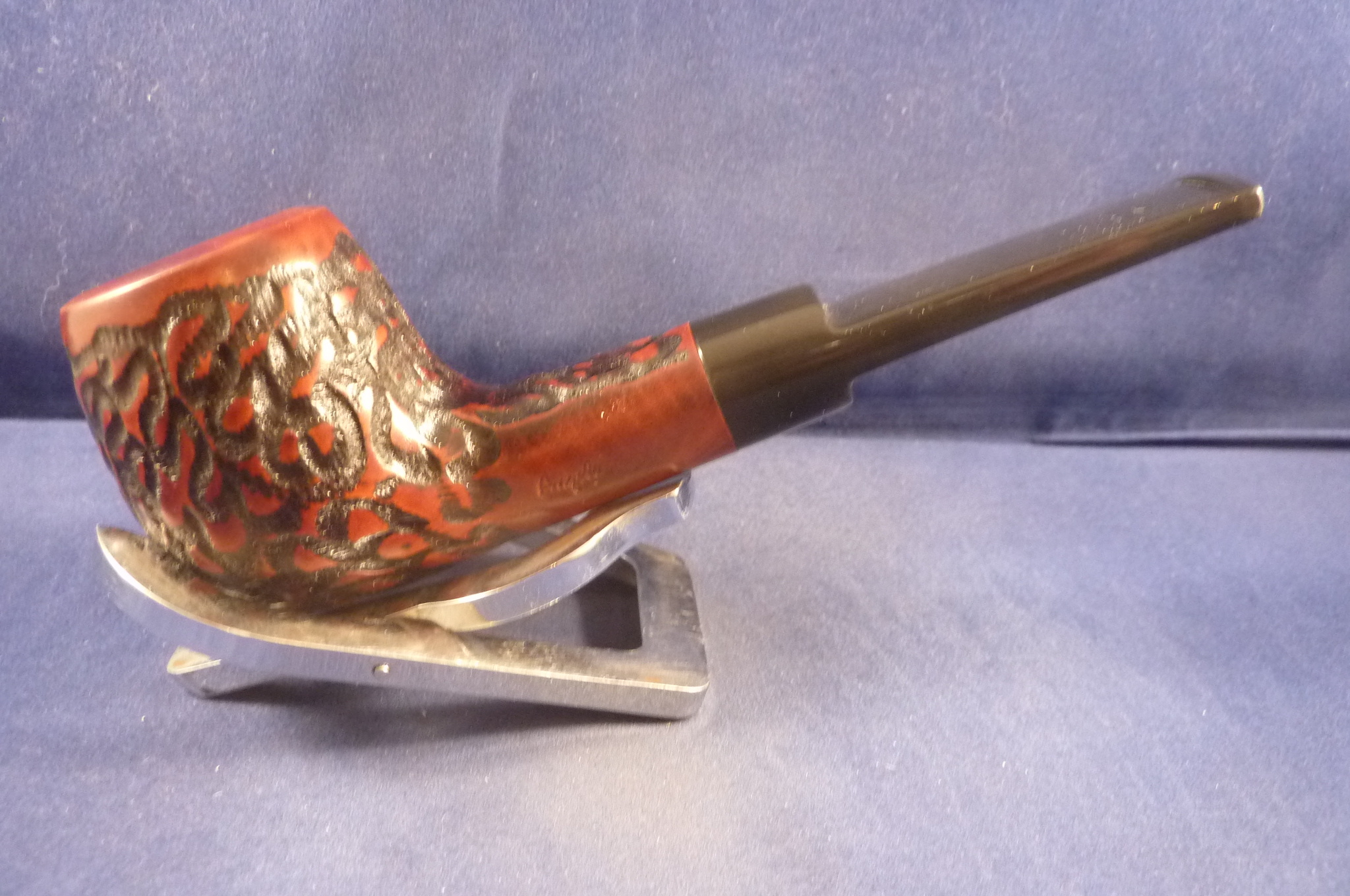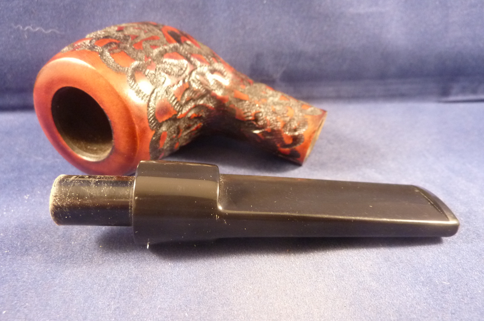 Rusticated briar pipe made for Angelo in Italy, black mouthpiece with 9 mm. filters.