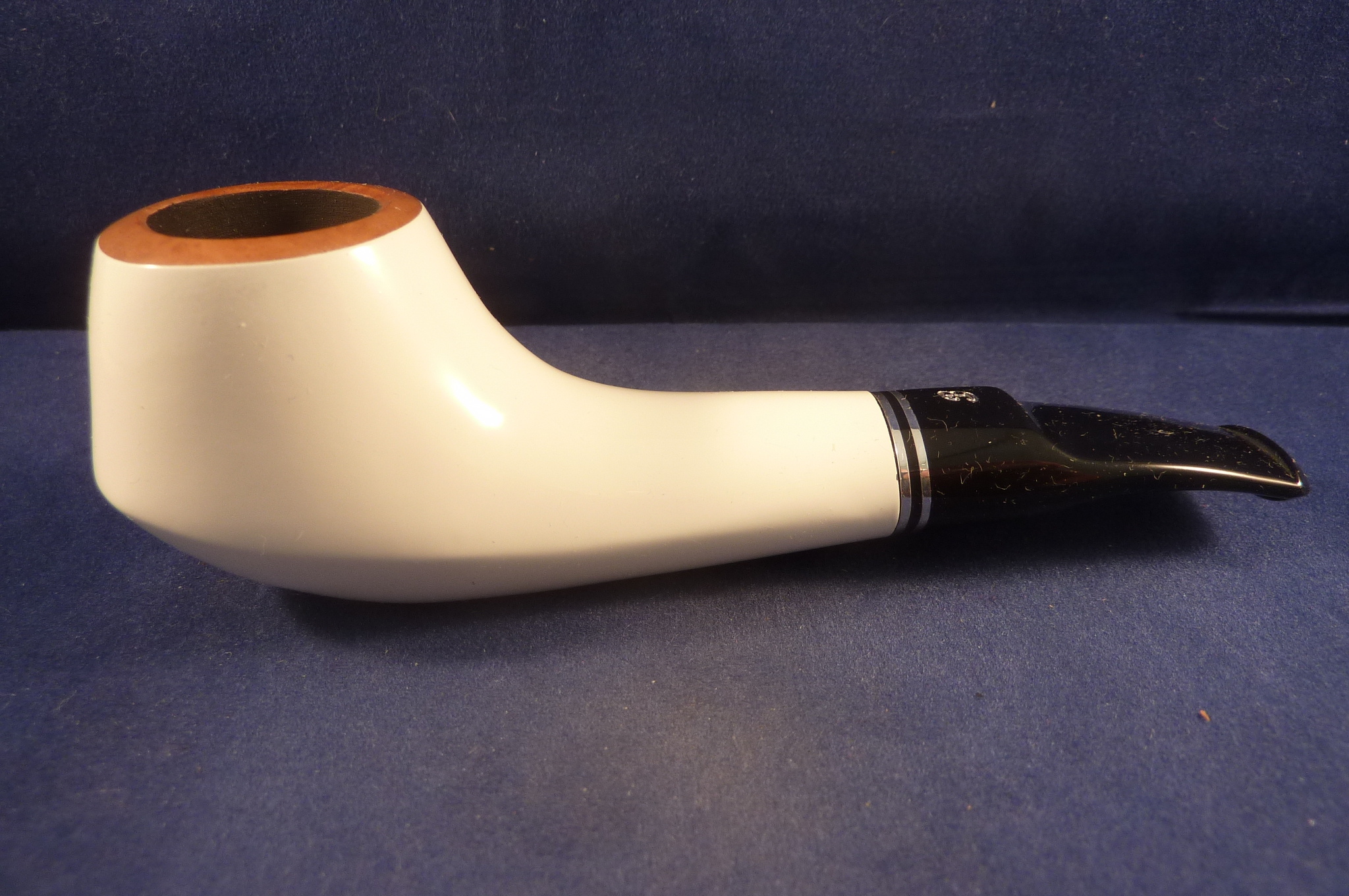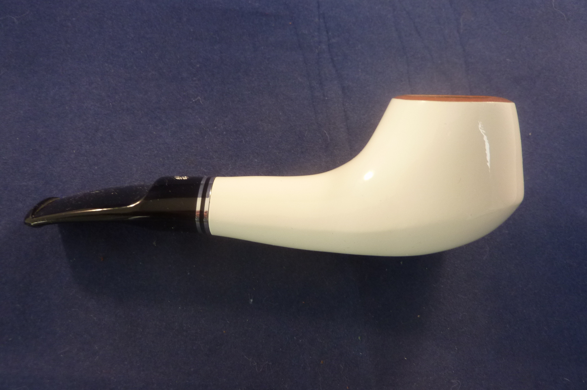 This is a brand new pipe made by L'Anatra in Italy. This Italian pipe has an elegant shape and a light brown finish and a sterling silver ring.