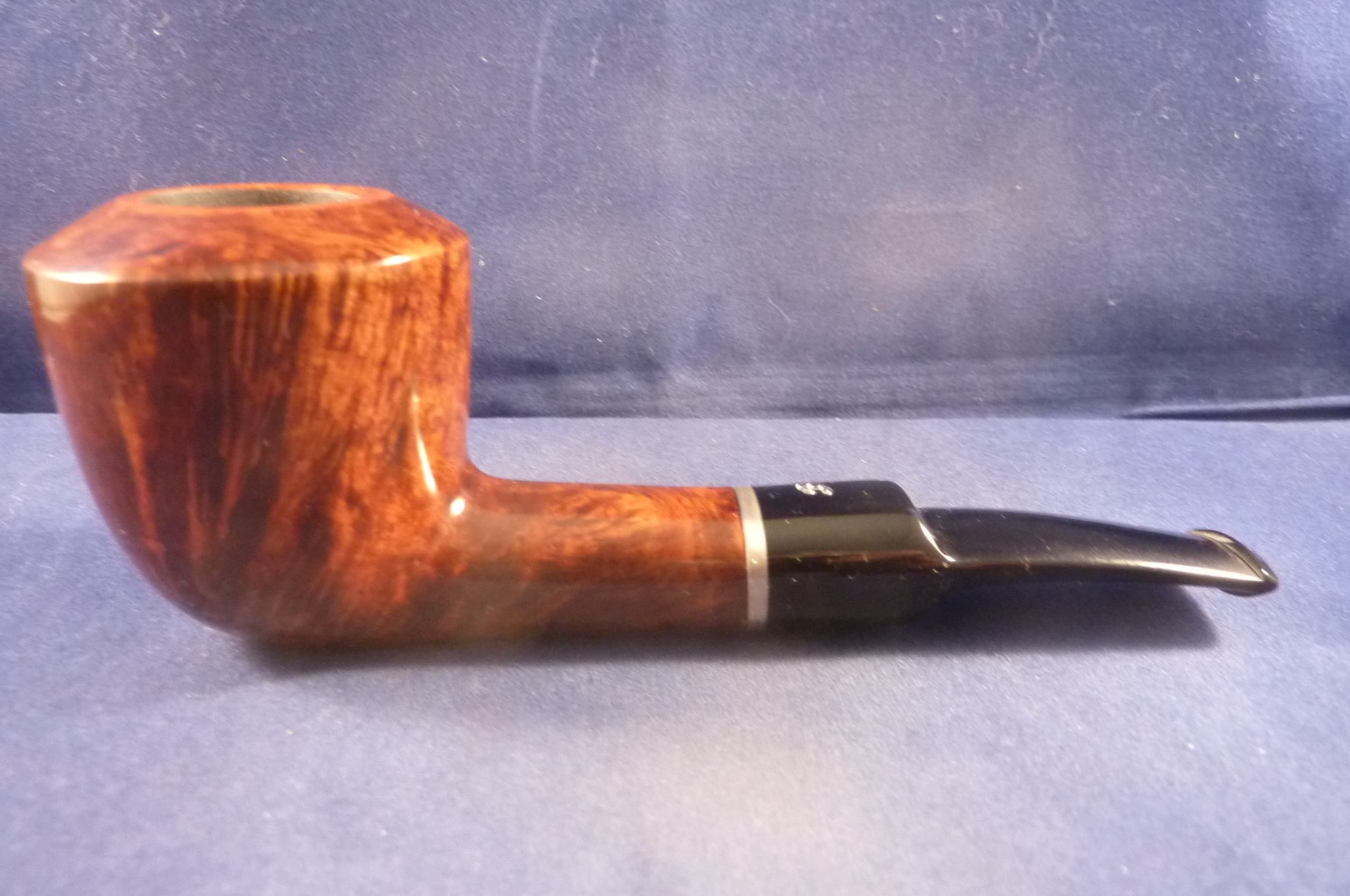 Classic briar pipe in a smooth finish with a brass ring made for Stanwell. Acrylic mouthpiece, without filter.
