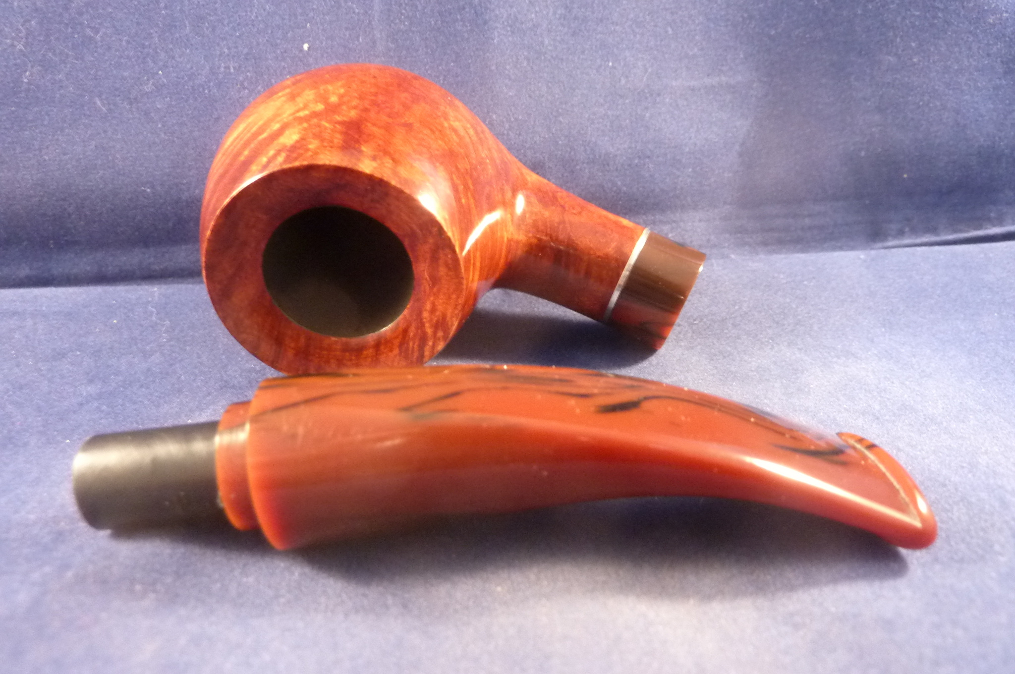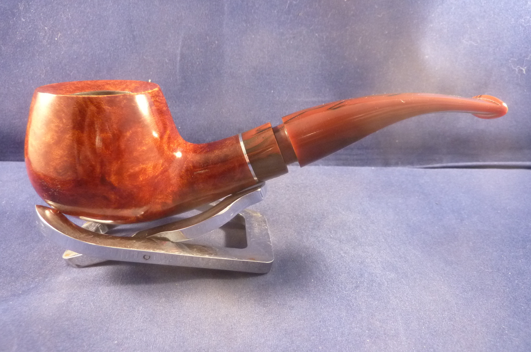 This is a brand new pipe made by Cesare Barontini in Italy. Beautiful briar pipe in an elegant shape. Marbled brown acrylic mouthpiece, 9 mm. filter.