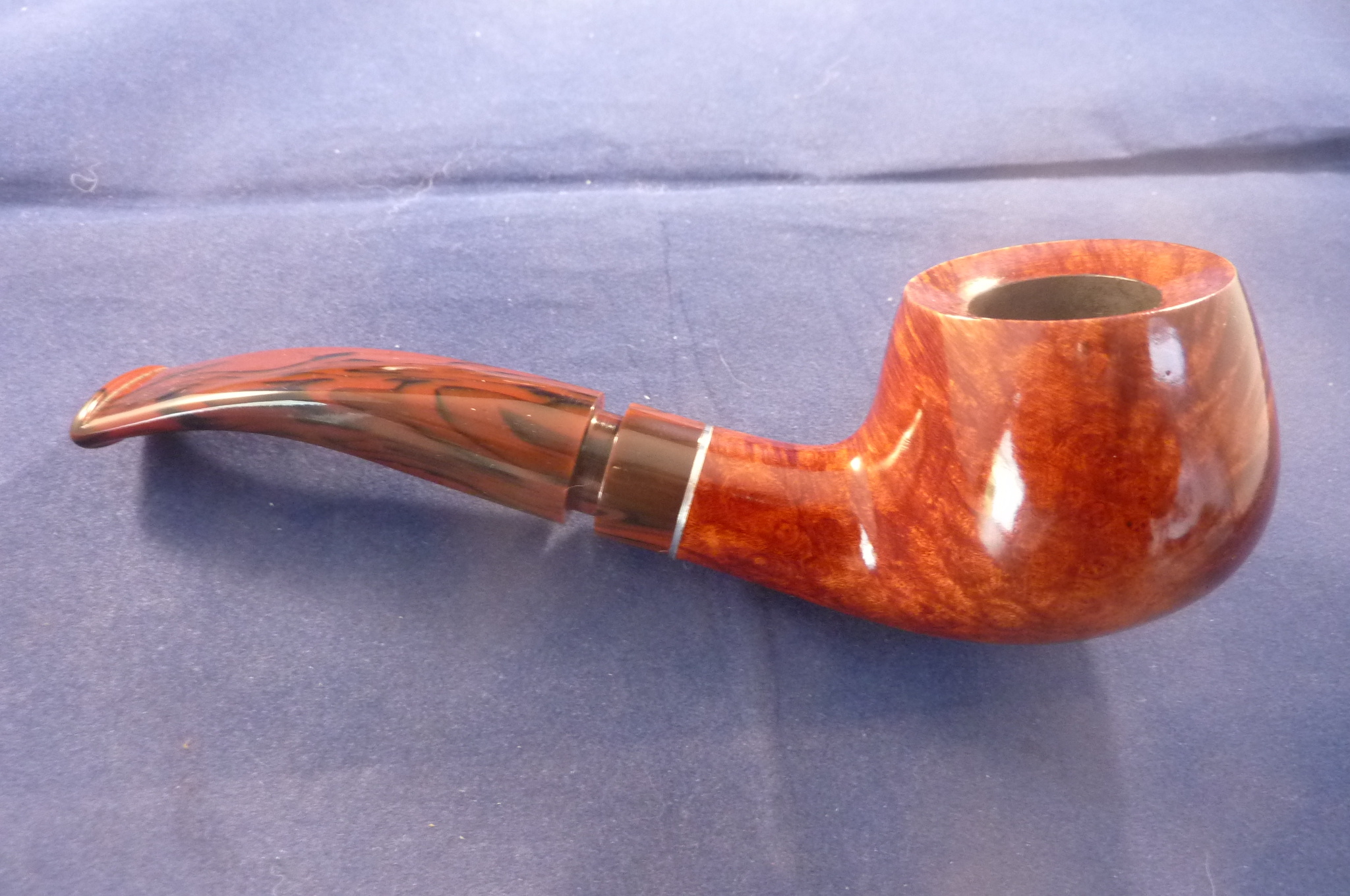 Smooth briar pipe with a chrome ring made by Molina in Italy...