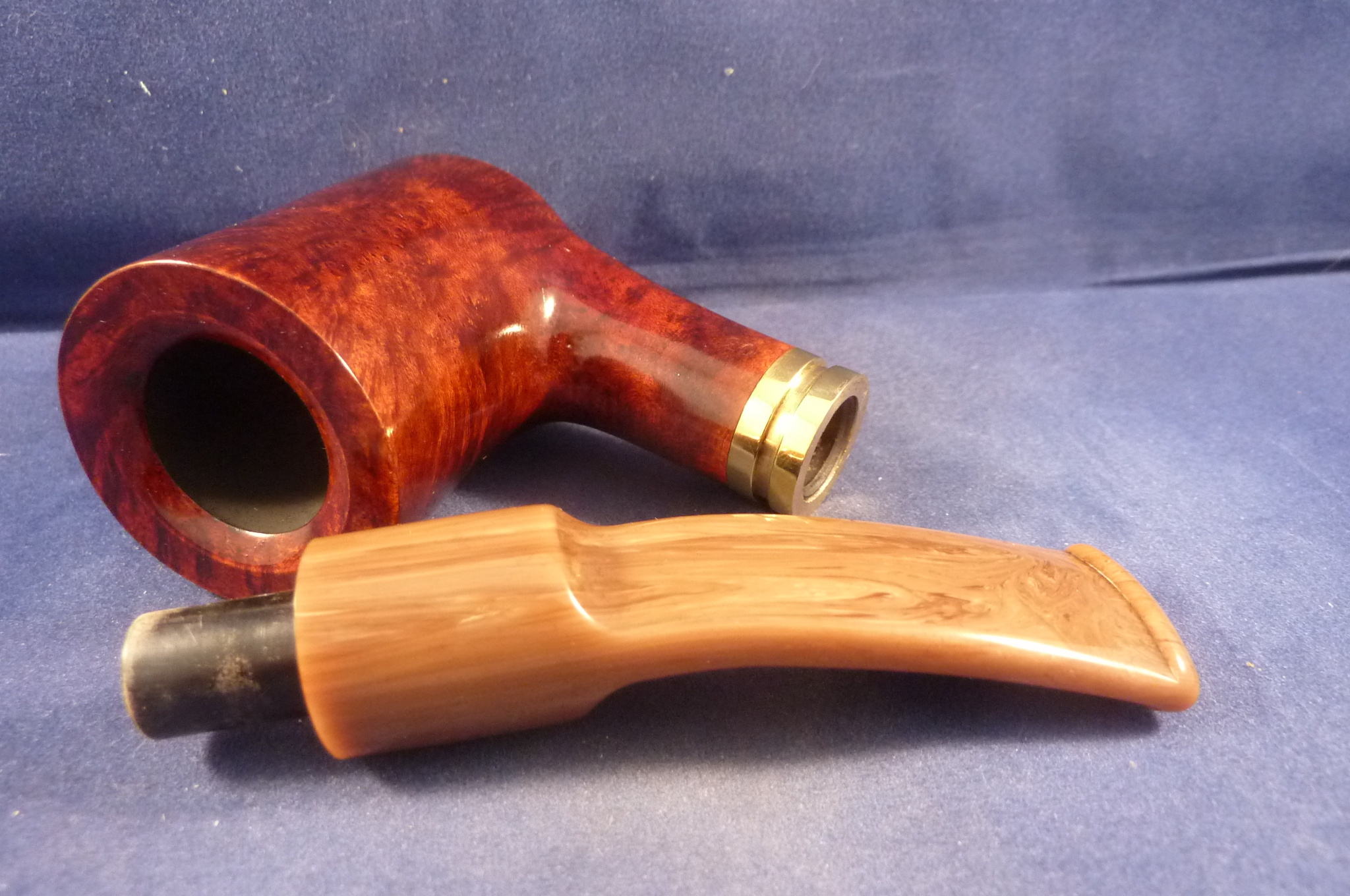 This is a brand new pipe made by Cesare Barontini in Italy. Beautiful briar pipe in an elegant shape. Marbled brown acrylic mouthpiece, 9 mm. filter.
