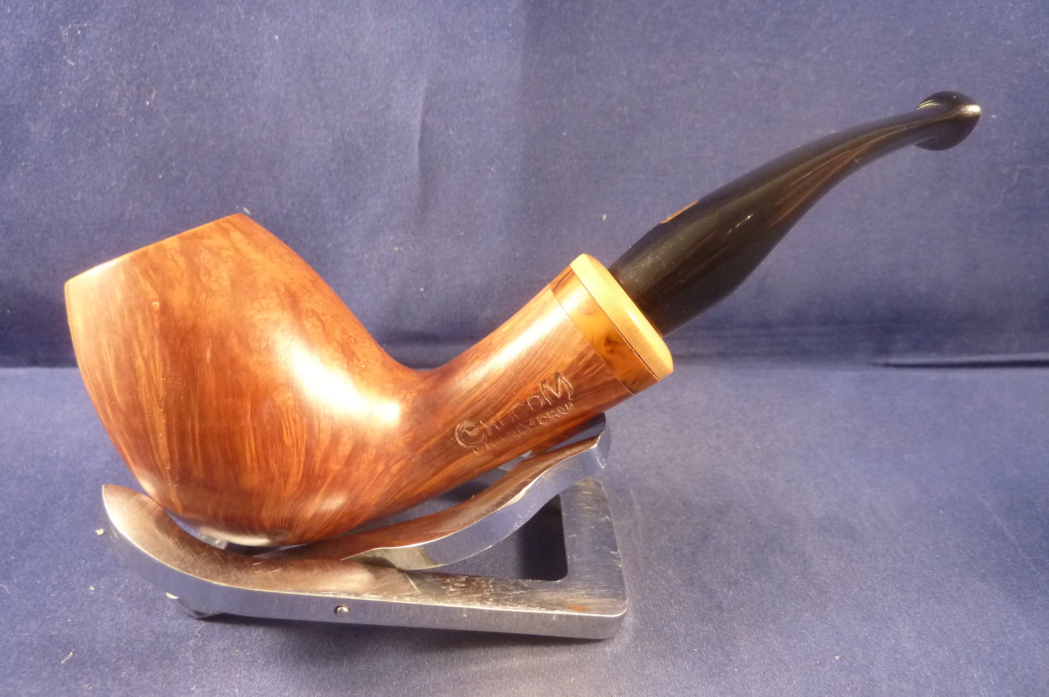Elegant briar pipe in a light brown finish made in France by Chacom. Hand cut mouthpiece, without filters.