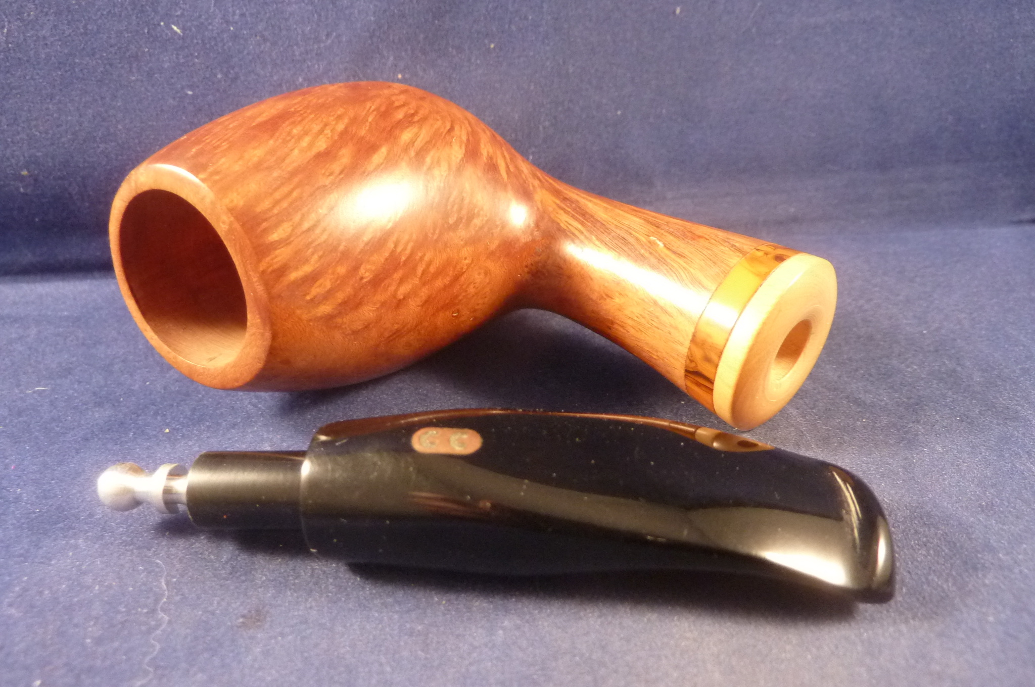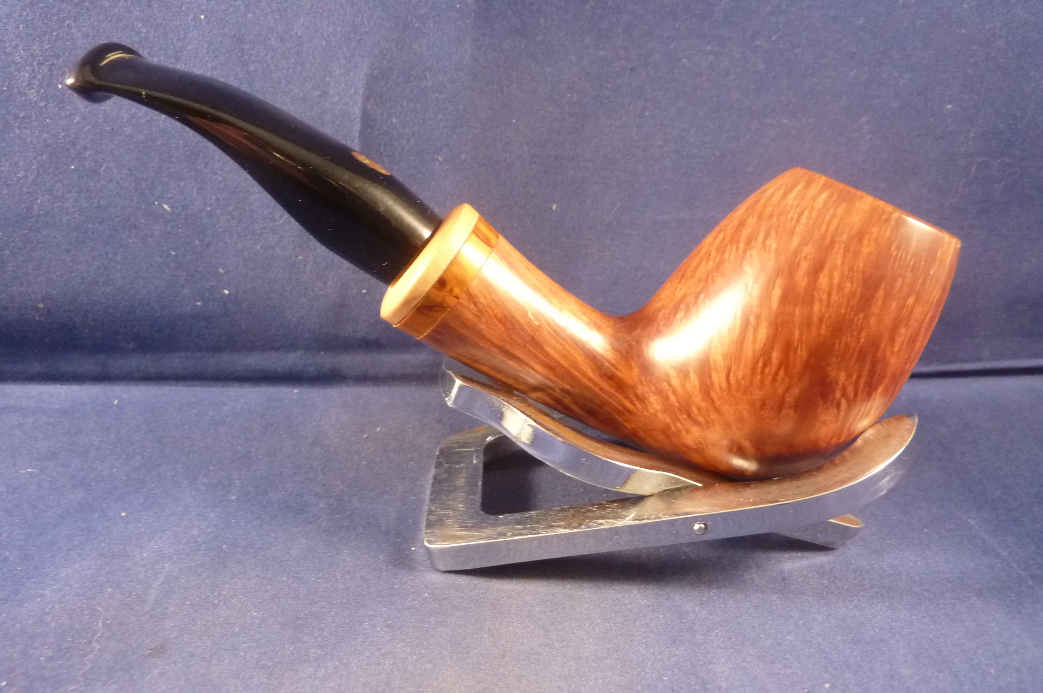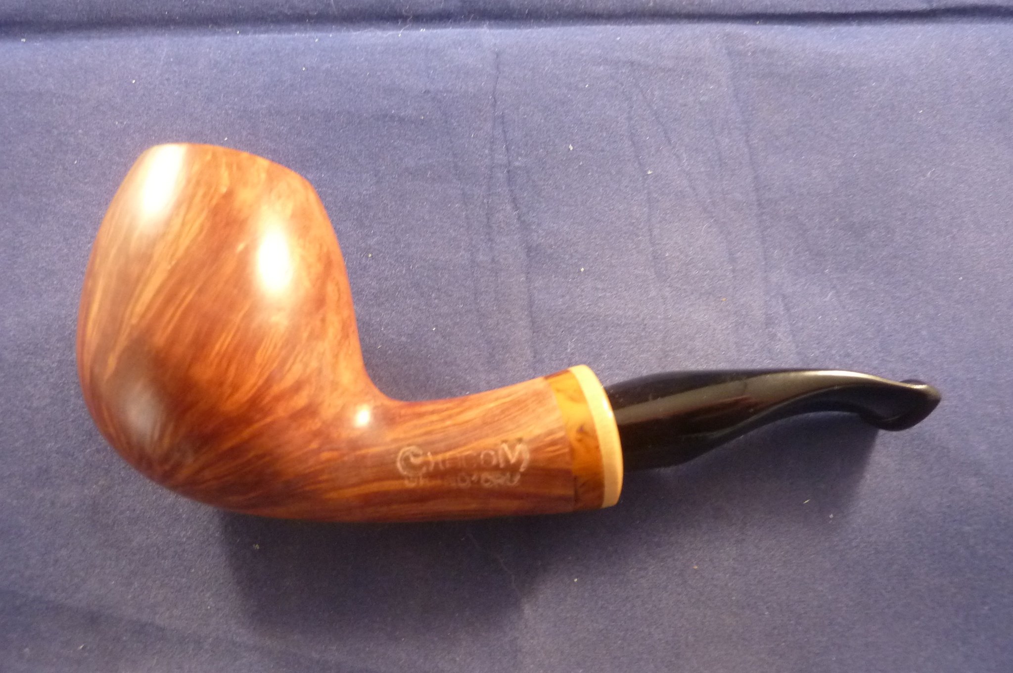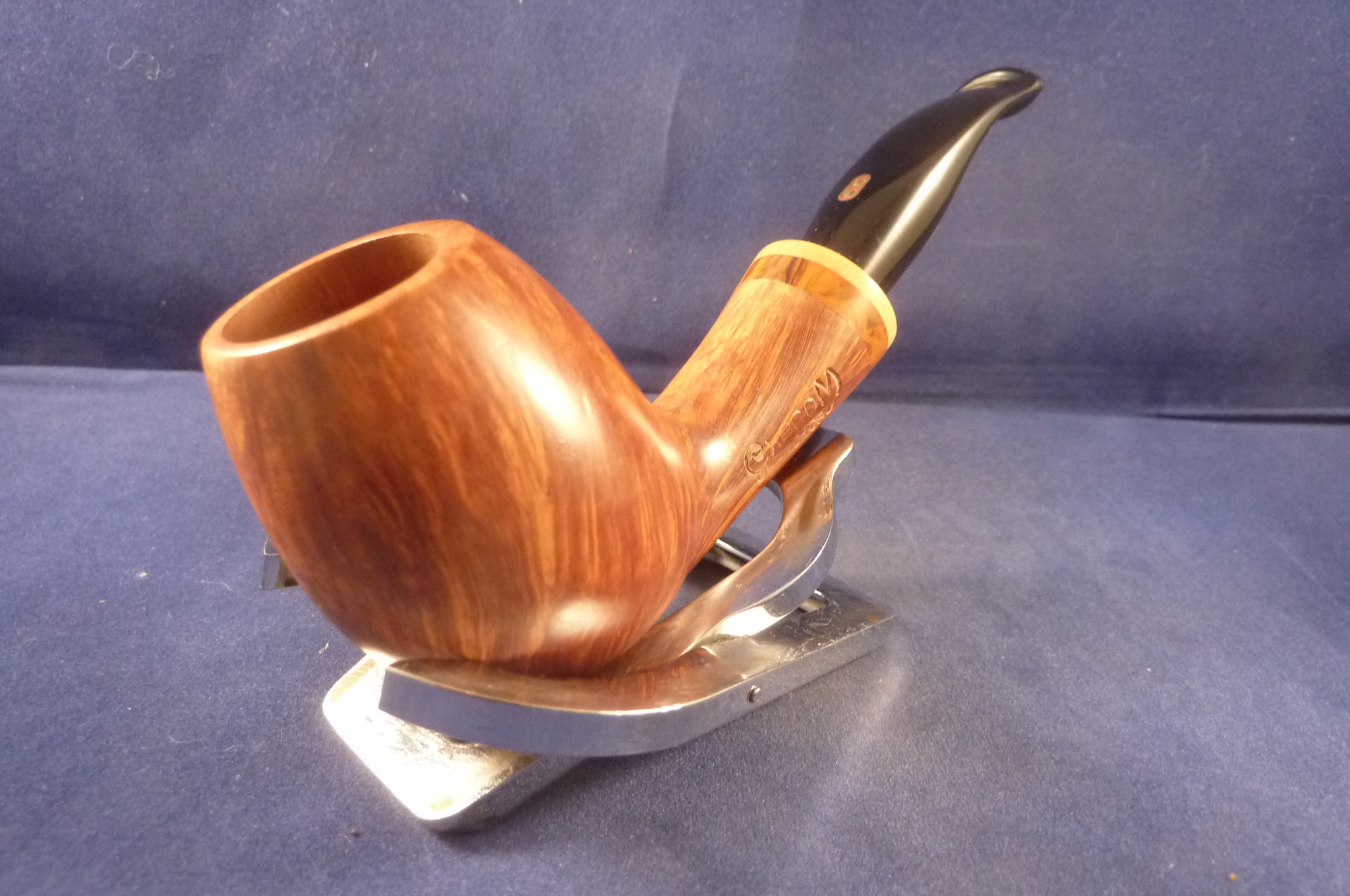 This is a brand new briar pipe in a light finish made by L'Anatra in Italy. This Italian pipe has really great colours and grains. Acrylic mouthpiece, without filter.