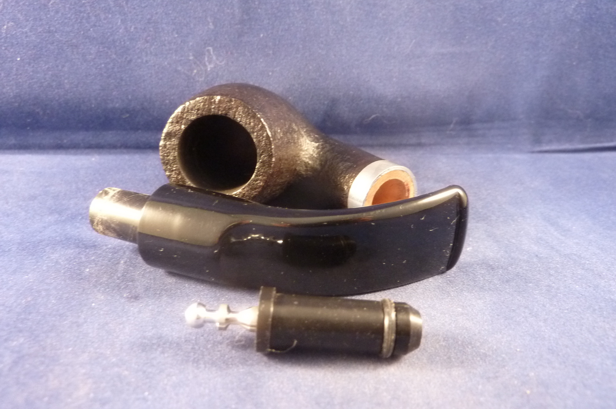 This is a brand new pipe made by Luigi Viprati in Italy. Beautiful hand made sandblasted briar pipe in an elegant shape. Acrylic mouthpiece, 9 mm. filter.