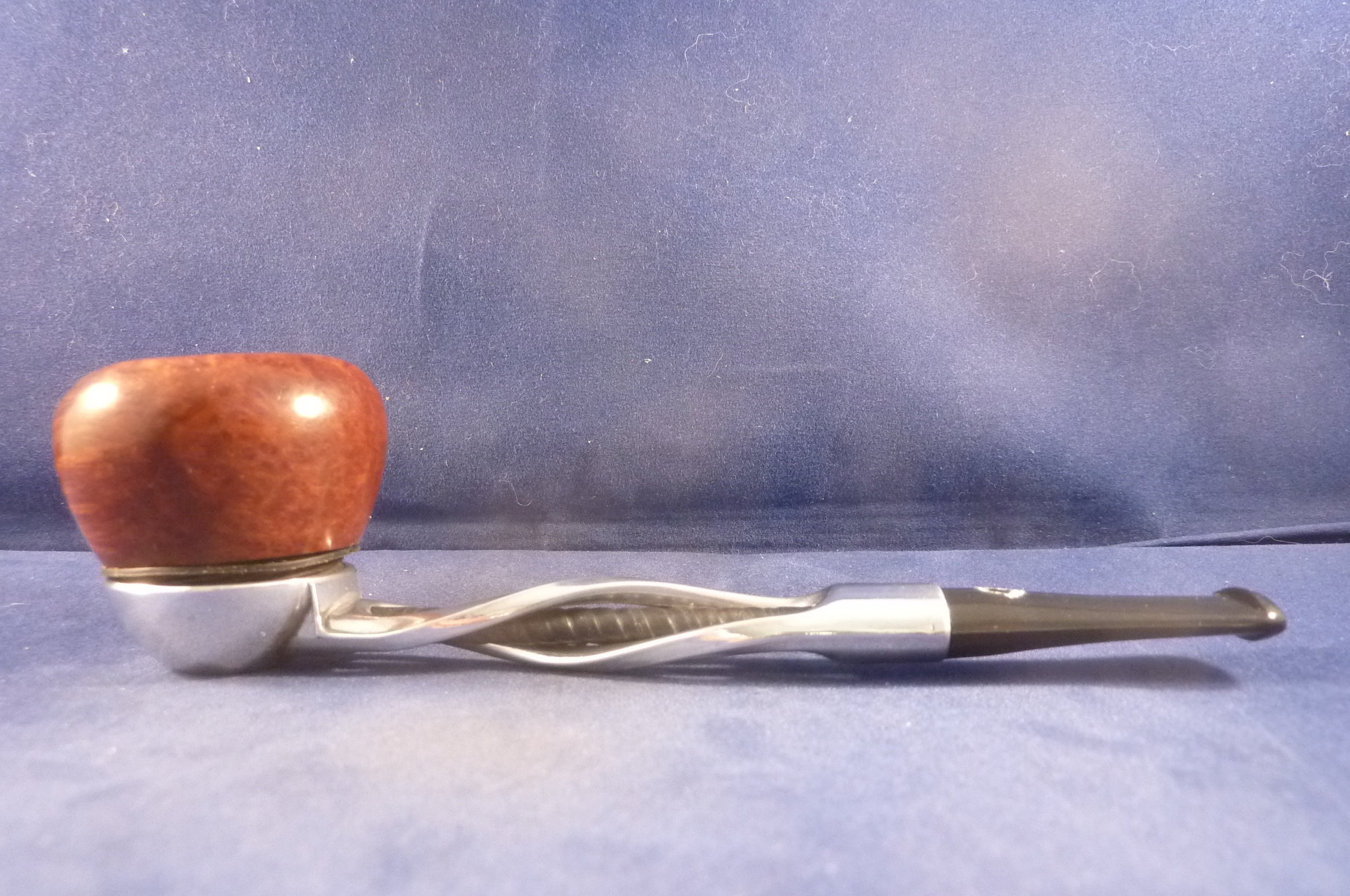 A high quality briar pipe. Specially selected fine quality bowls mounted with a hallmarked nickel band and an army style mouthpiece. P-Lip mouthpiece, with 9 mm. filter.