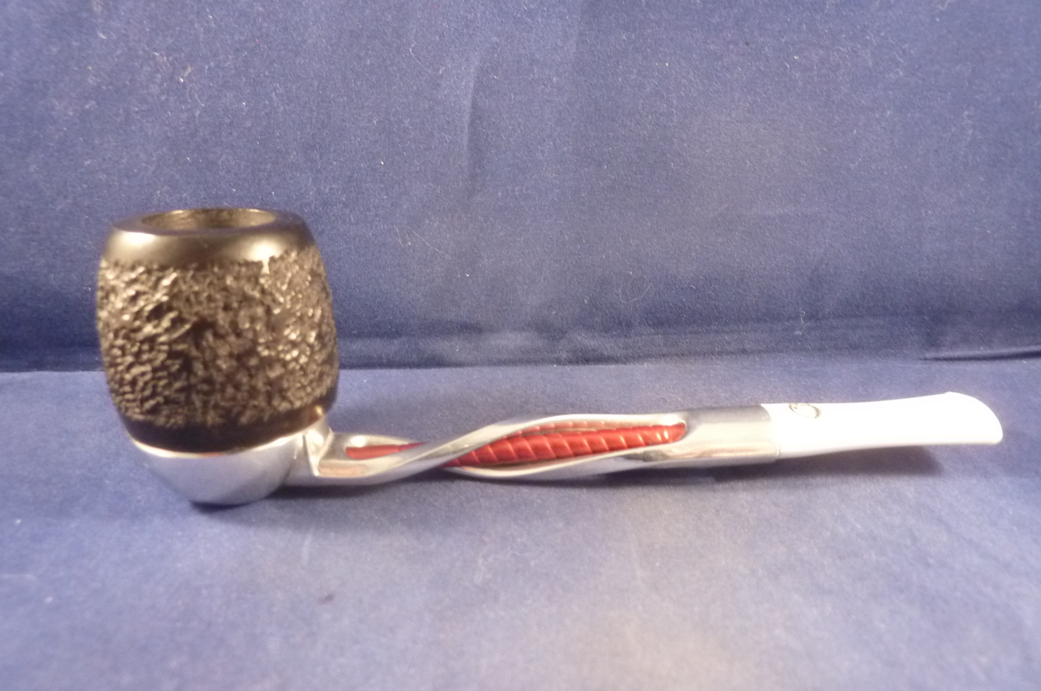 Straight Falcon pipe with a twisted chrome/red stem and a bowl in rusticated finish.