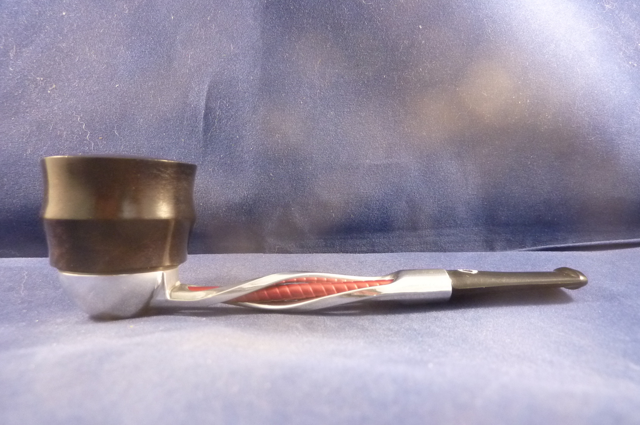 Straight Falcon pipe with a twisted chrome/red stem and a bowl in smooth finish.
