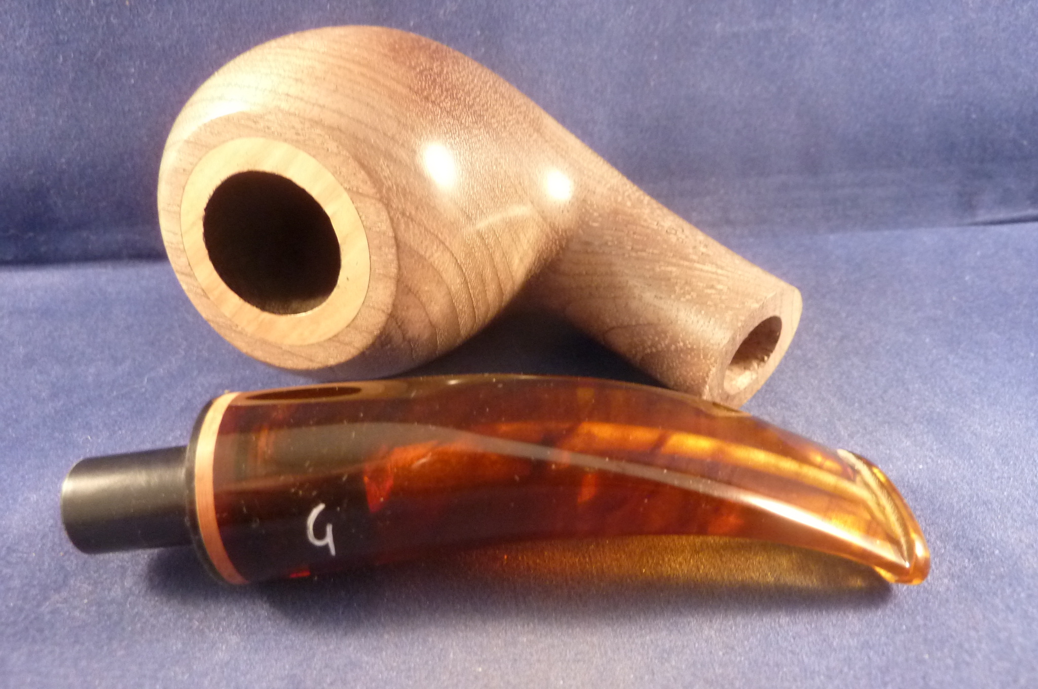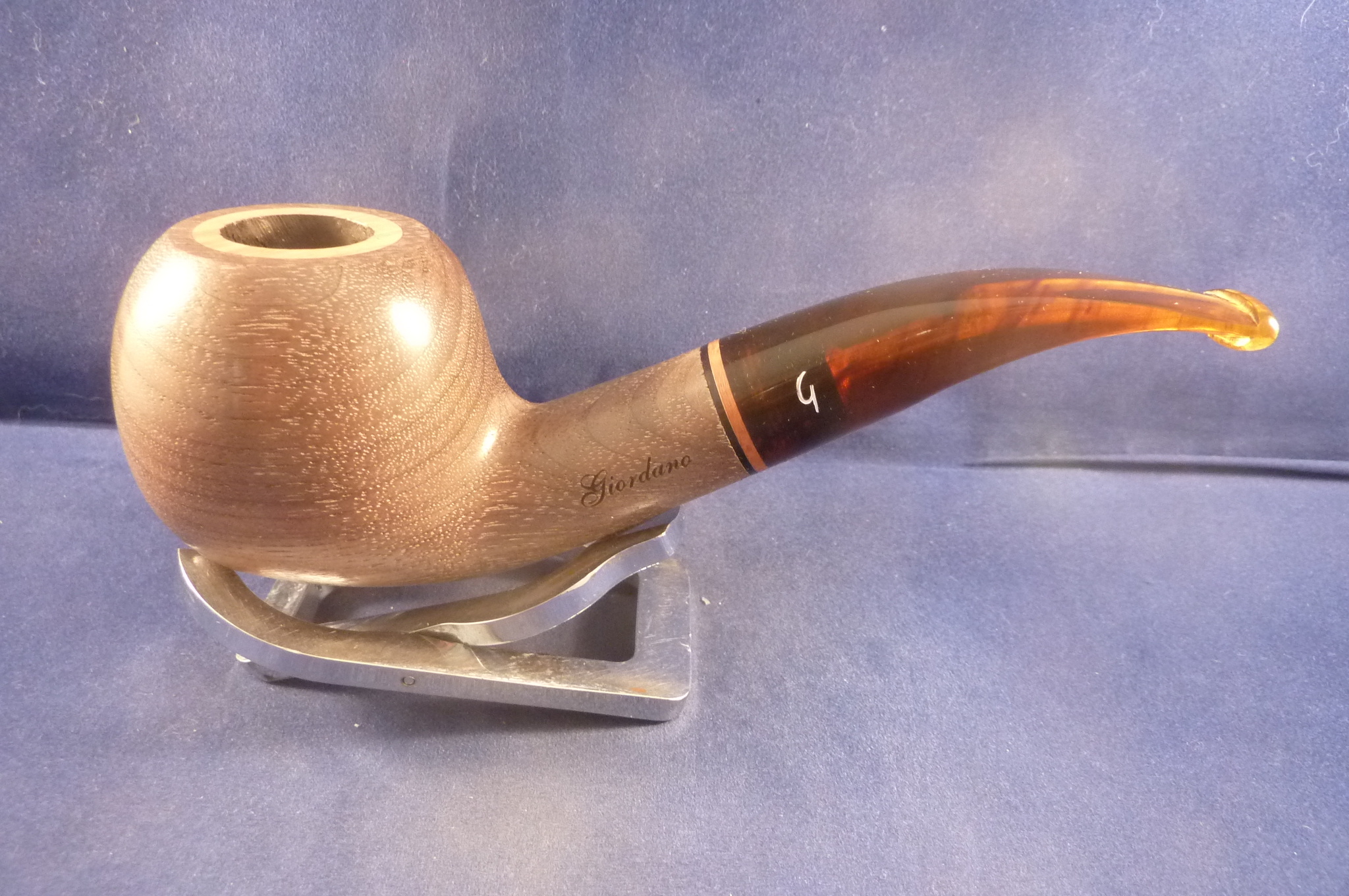 Smooth walnut pipe with a briar inlay made by Giordano in Italy. Acrylic mouthpiece, 9 mm. filter.
