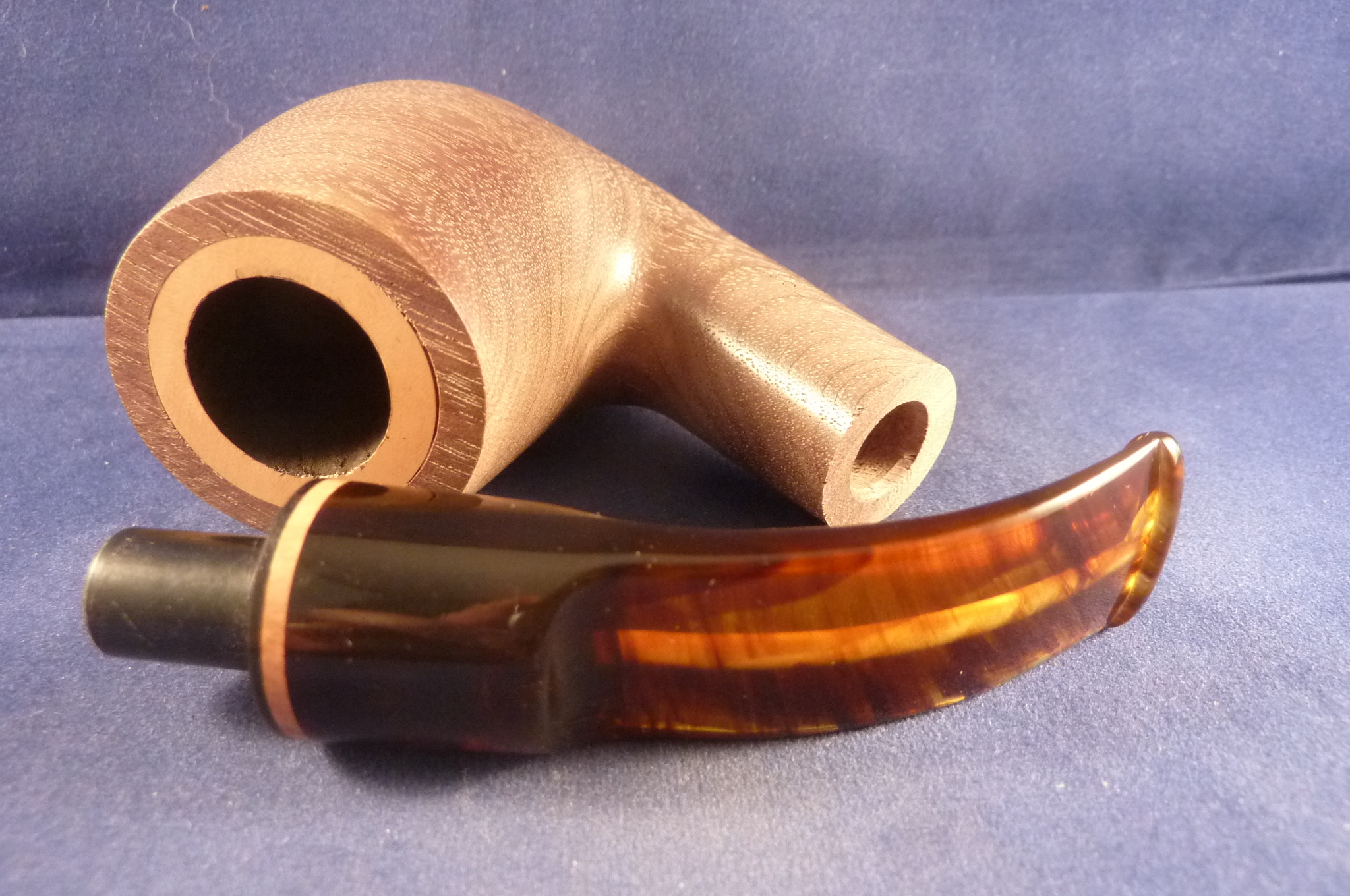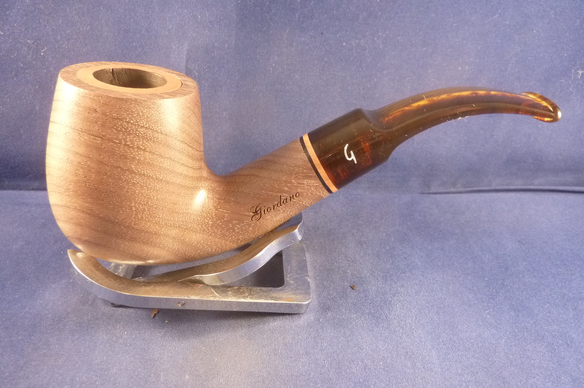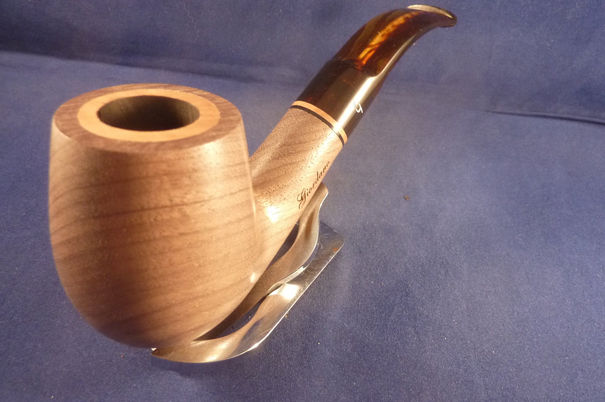 Smooth walnut pipe with a briar inlay made by Giordano in Italy. Acrylic mouthpiece, 9 mm. filter.