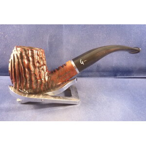 Sandblasted briar pipe in a natural finish made for Haddocks Pipeshop in Italy in the workshop of Ser Jacopo, acrylic mouthpiece, with 9 mm. filters.