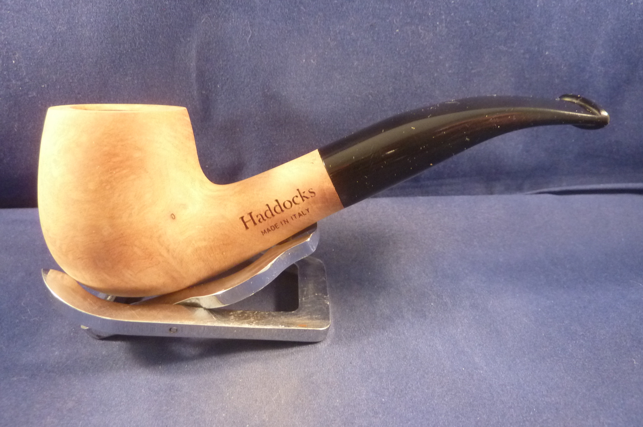Smooth briar pipe in a natural finish made for Haddocks Pipeshop in Italy, acrylic mouthpiece, with 9 mm. filters.