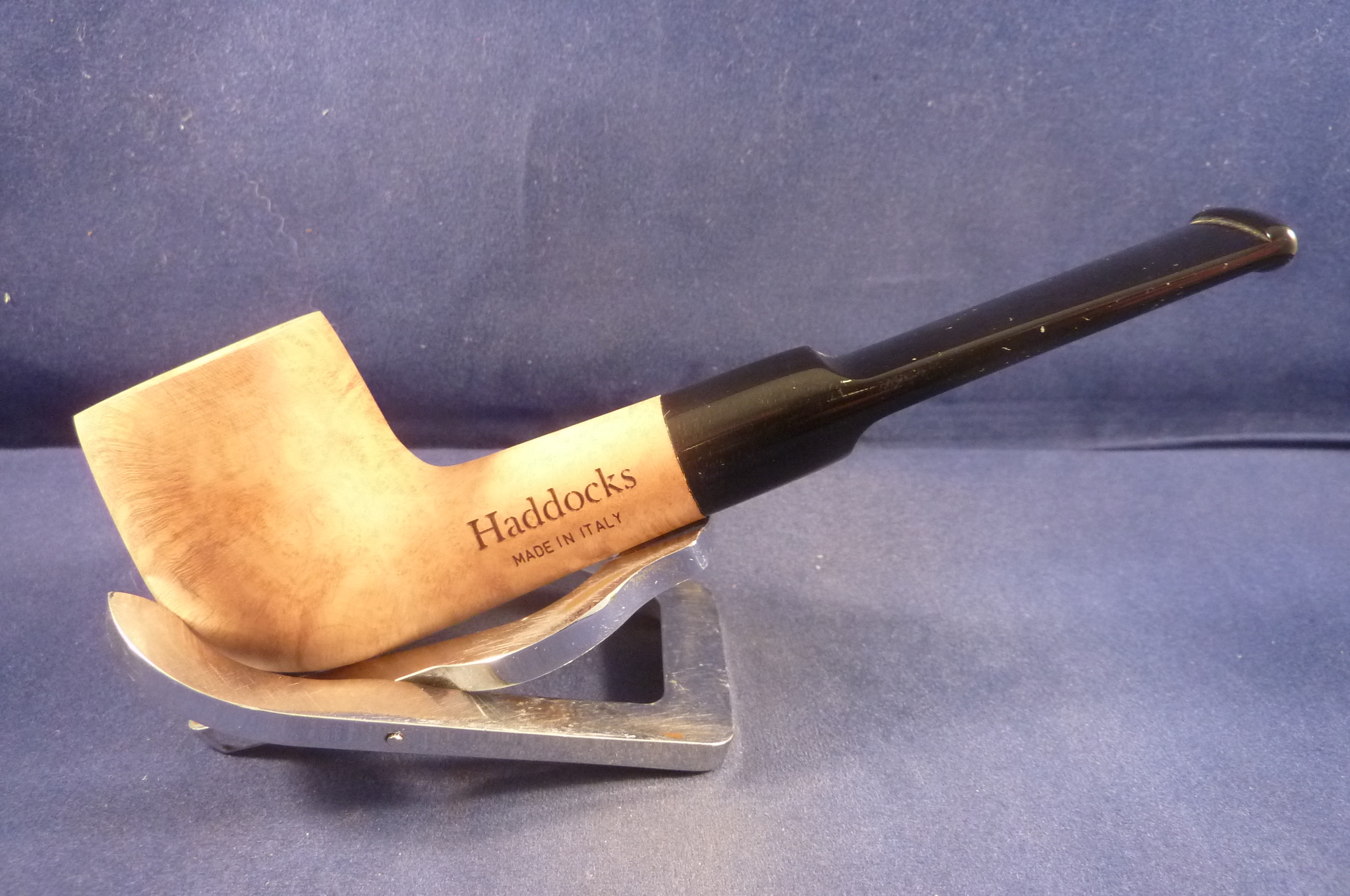 Smooth briar pipe in a natural finish made for Haddocks Pipeshop in Italy, acrylic mouthpiece, with 9 mm. filters.
