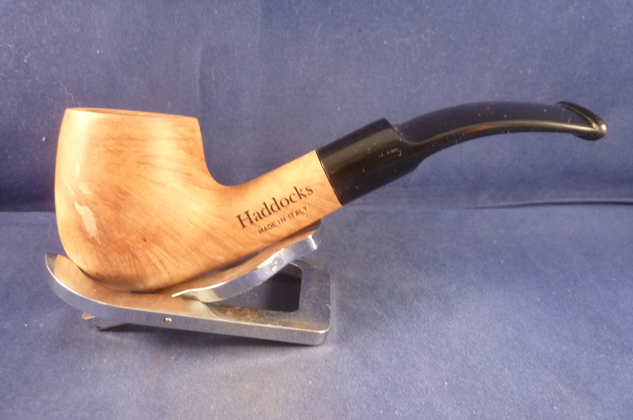 Smooth briar pipe in a natural finish made for Haddocks Pipeshop in Italy, acrylic mouthpiece, with 9 mm. filters.
