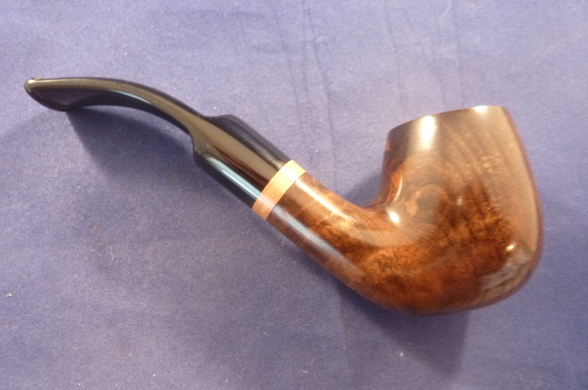 This is a smooth pipe made of olive wood with a copper ring....