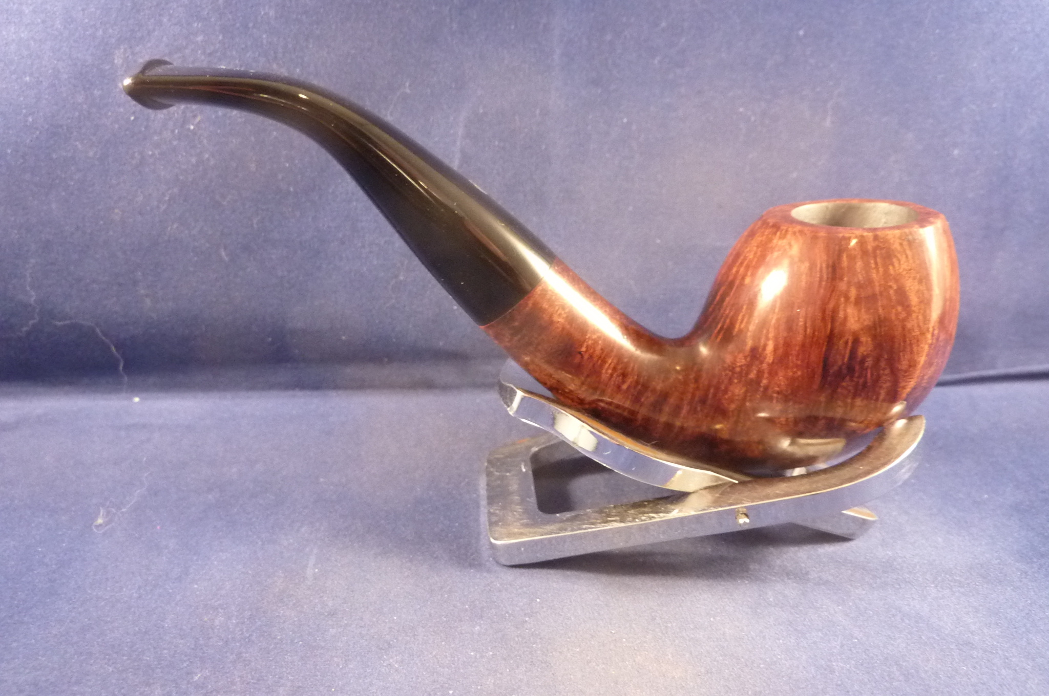This is a brand new pipe made by L'Anatra in Italy. This Italian pipe has an elegant shape and a brown finish. Acrylic mouthpiece, with 9 mm. filter.