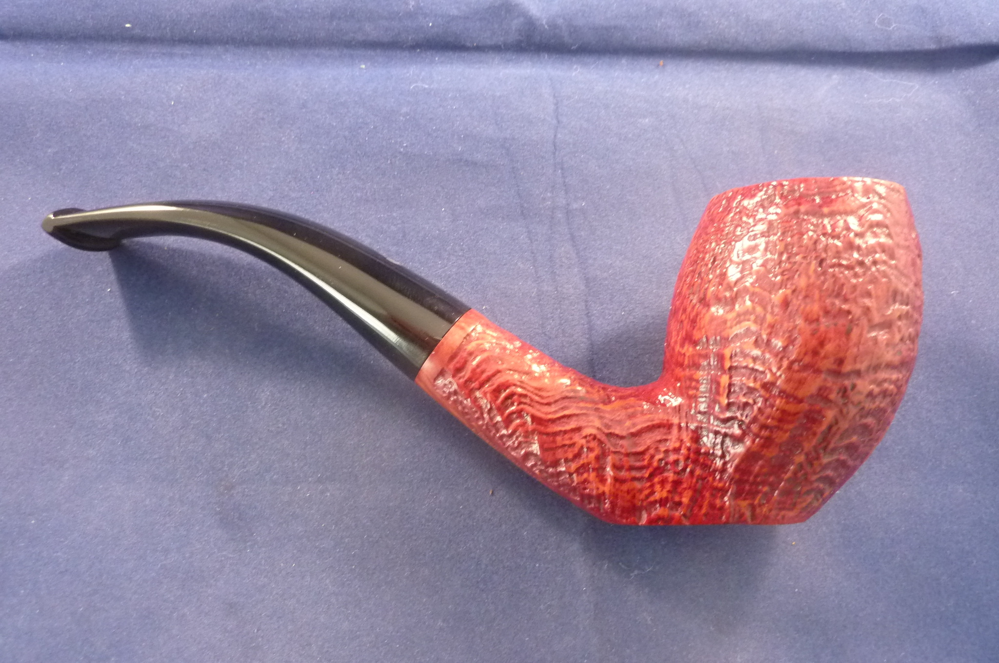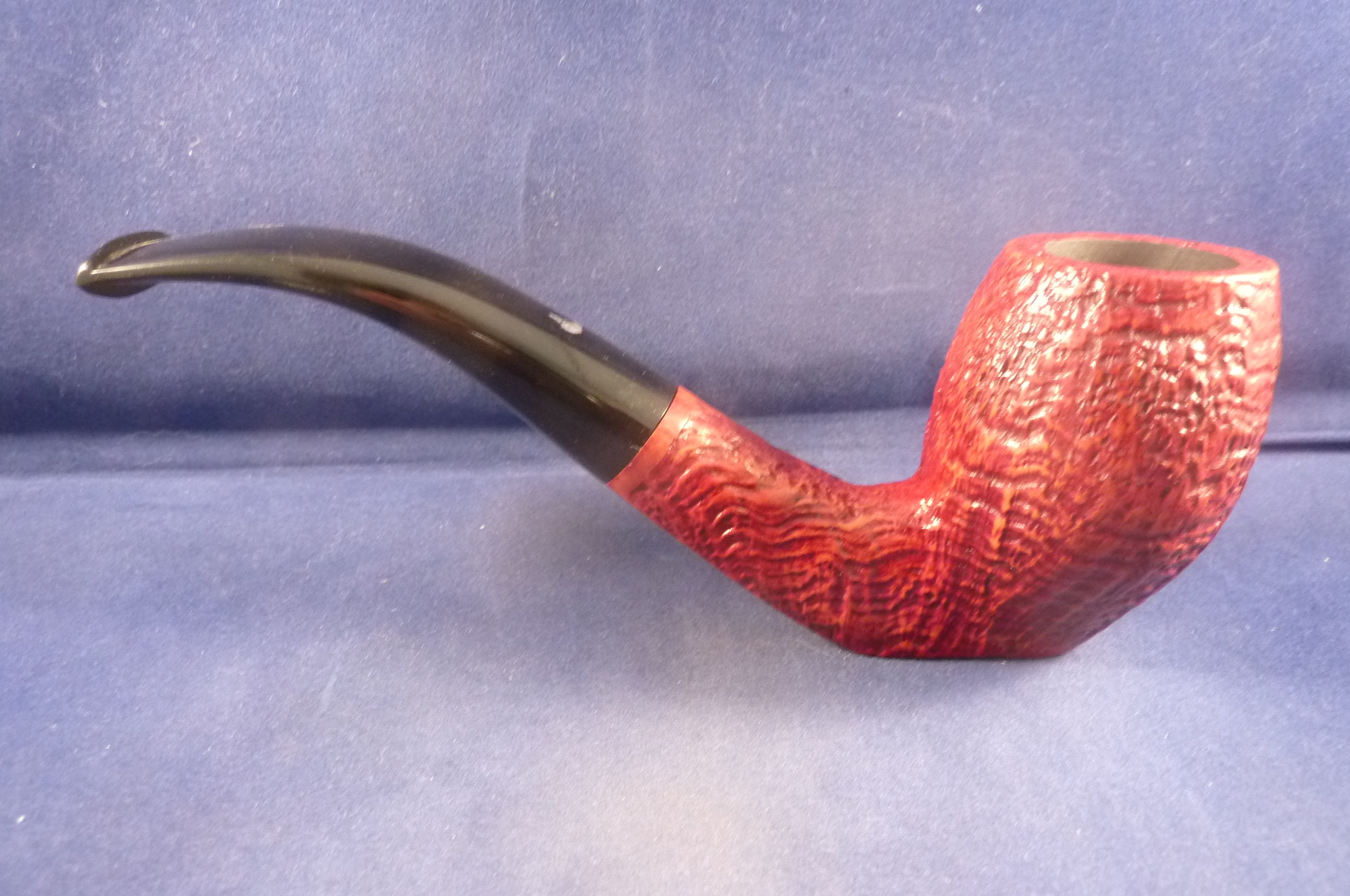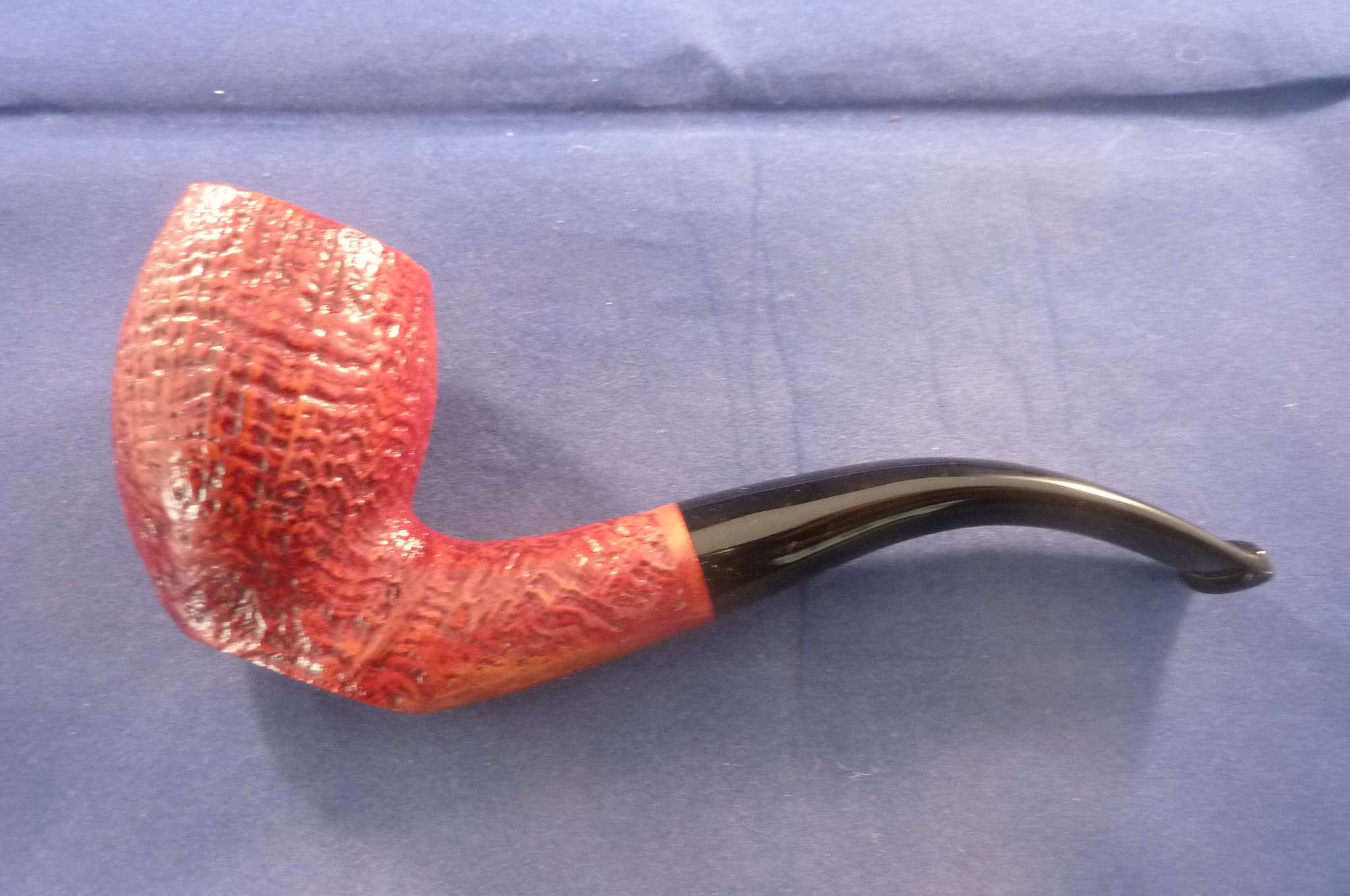 This is a brand new pipe made by L'Anatra in Italy. This Italian pipe has really great colours and has been beautiful sandblasted. Acrylic mouthpiece, with 9 mm. filter.