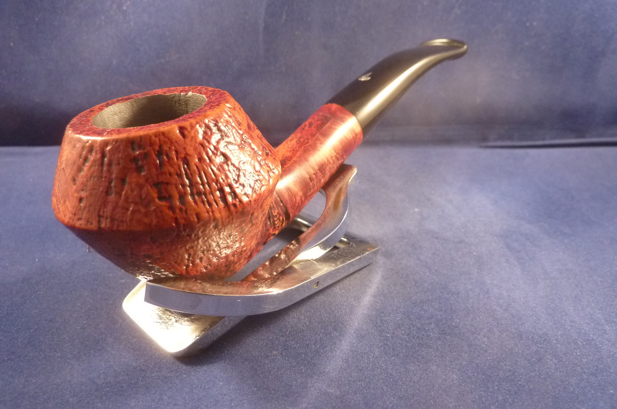 This is a brand new pipe made by L'Anatra in Italy. This Italian pipe has really great colours and has been beautiful sandblasted. Acrylic mouthpiece, with 9 mm. filter.