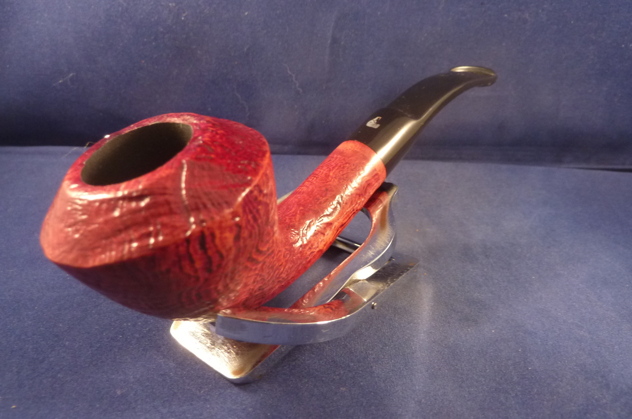 This is a brand new pipe made by L'Anatra in Italy. This Italian pipe has really great colours and has been beautiful sandblasted. Acrylic mouthpiece, with 9 mm. filter.