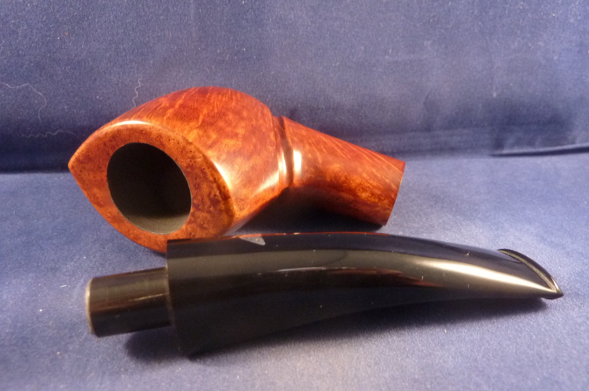 This is a brand new pipe made by Luigi Viprati in Italy. Beautiful hand made briar pipe in a brown finish. Acrylic mouthpiece, 9 mm. filter.