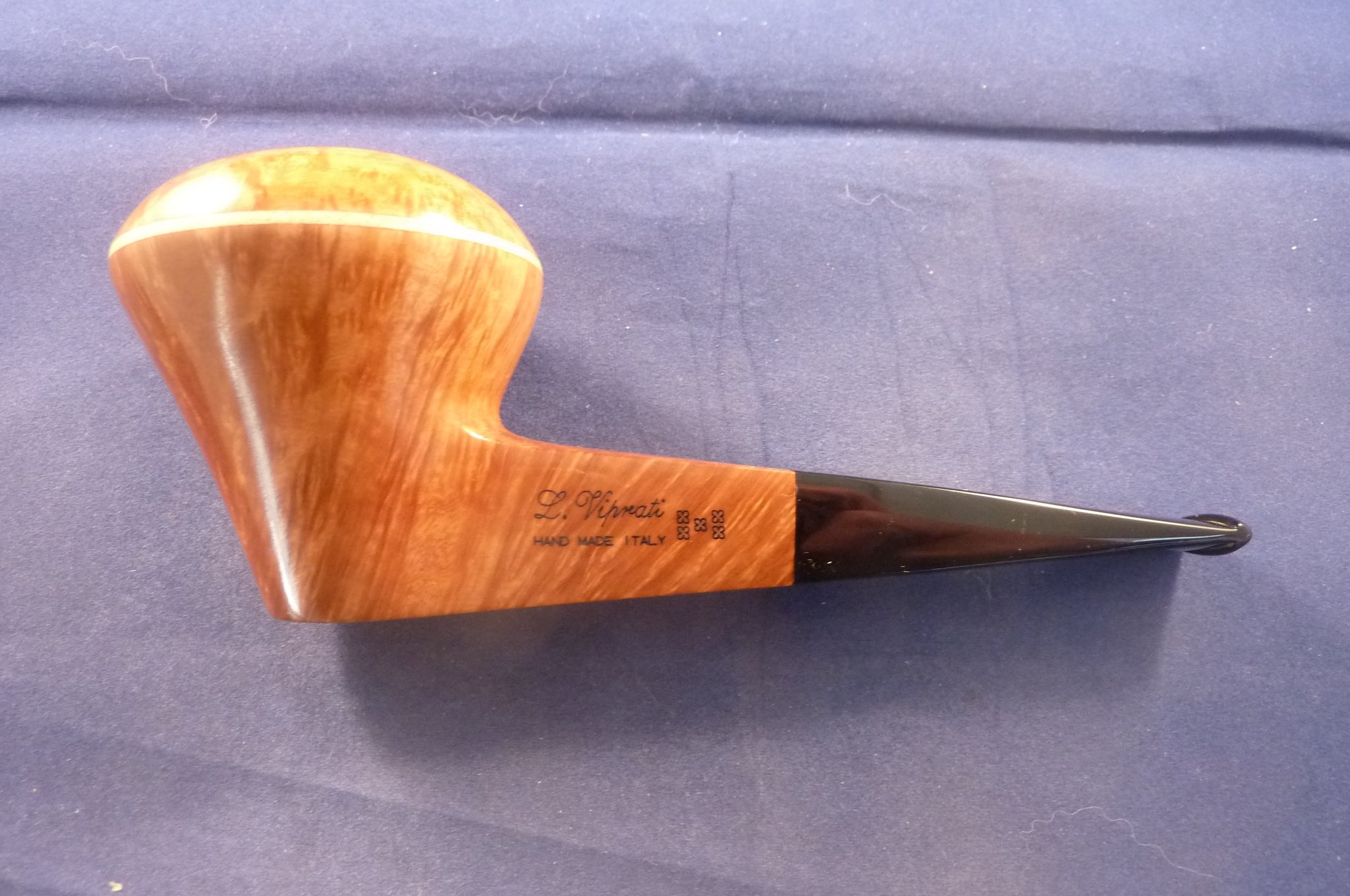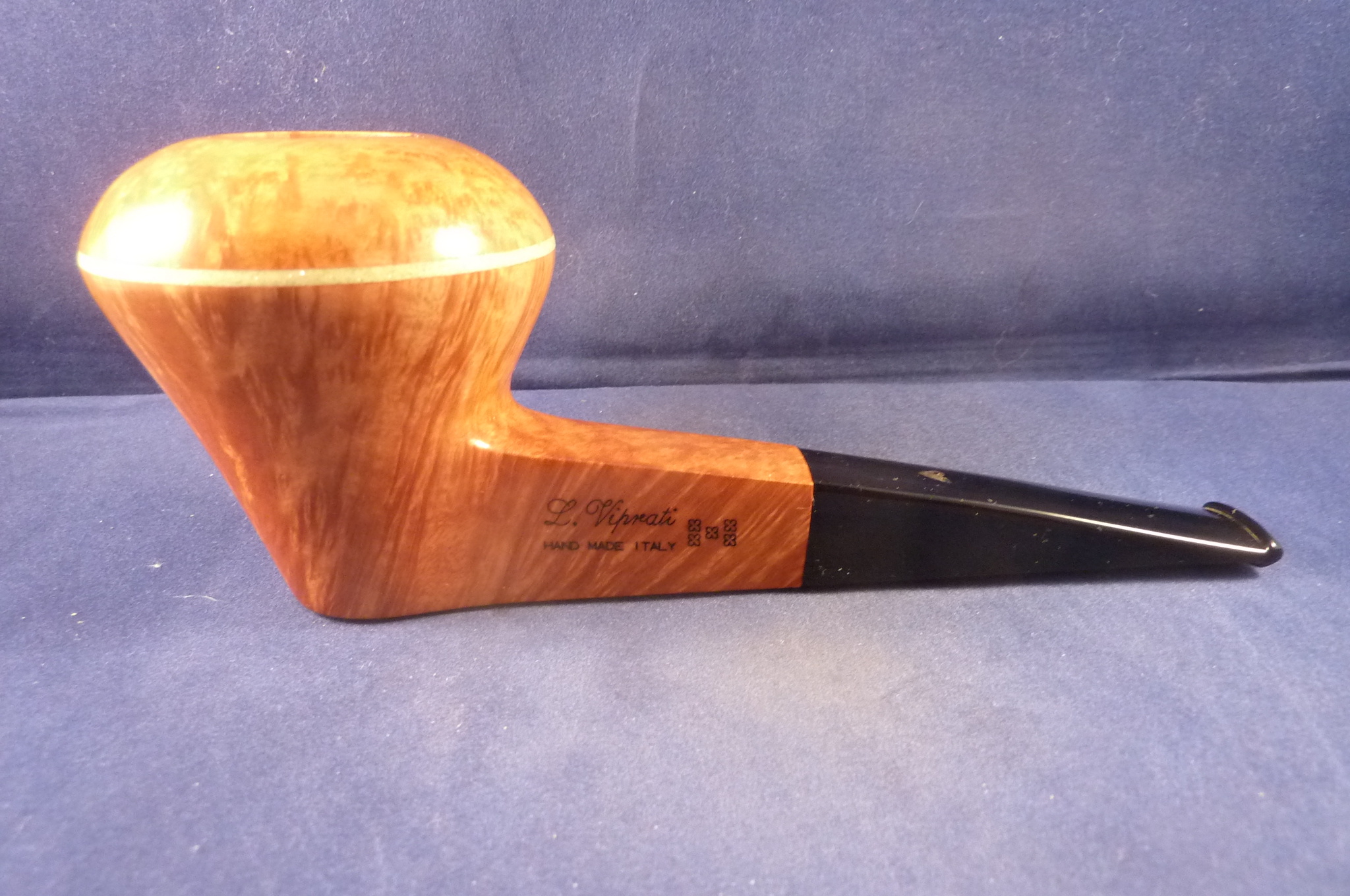 This is a brand new pipe made by Luigi Viprati in Italy. Beautiful hand made smooth briar pipe in a natural finish with beautiful grains. Acrylic mouthpiece, 9 mm. filter.