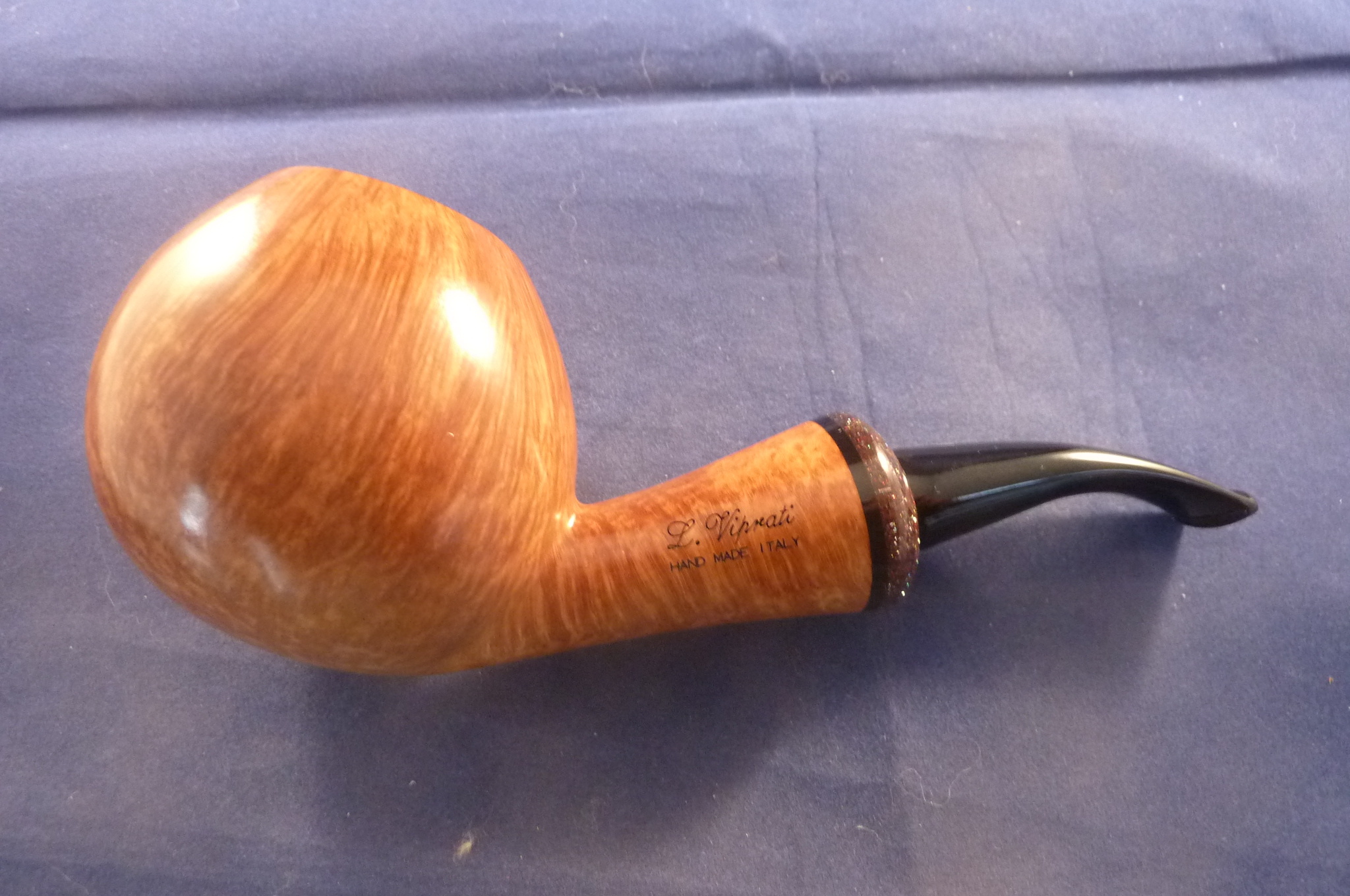 Giant briar pipe in a natural finish made by Luigi Viprati in Italy. Acrylic mouthpiece, 9 mm. filter.