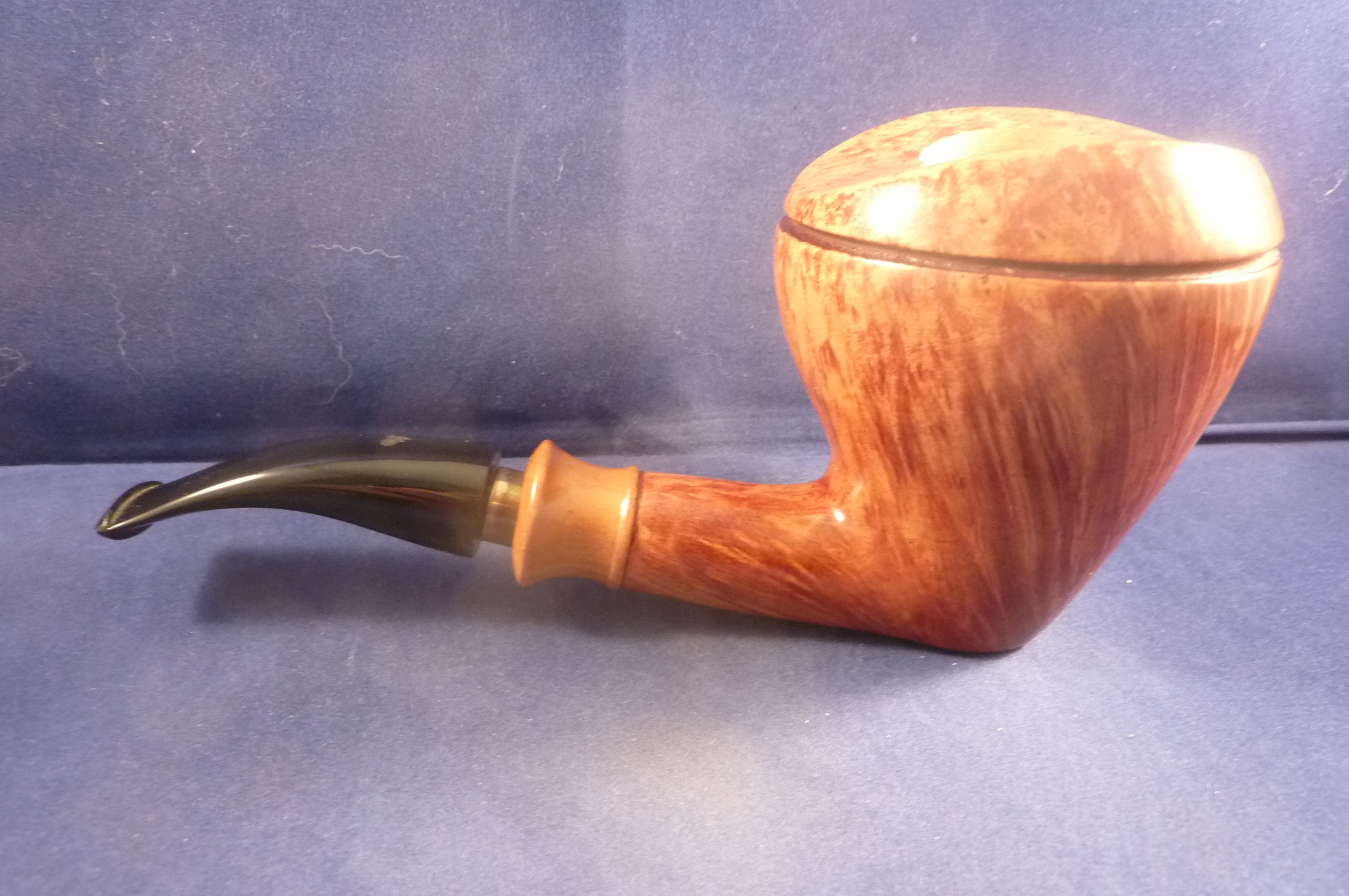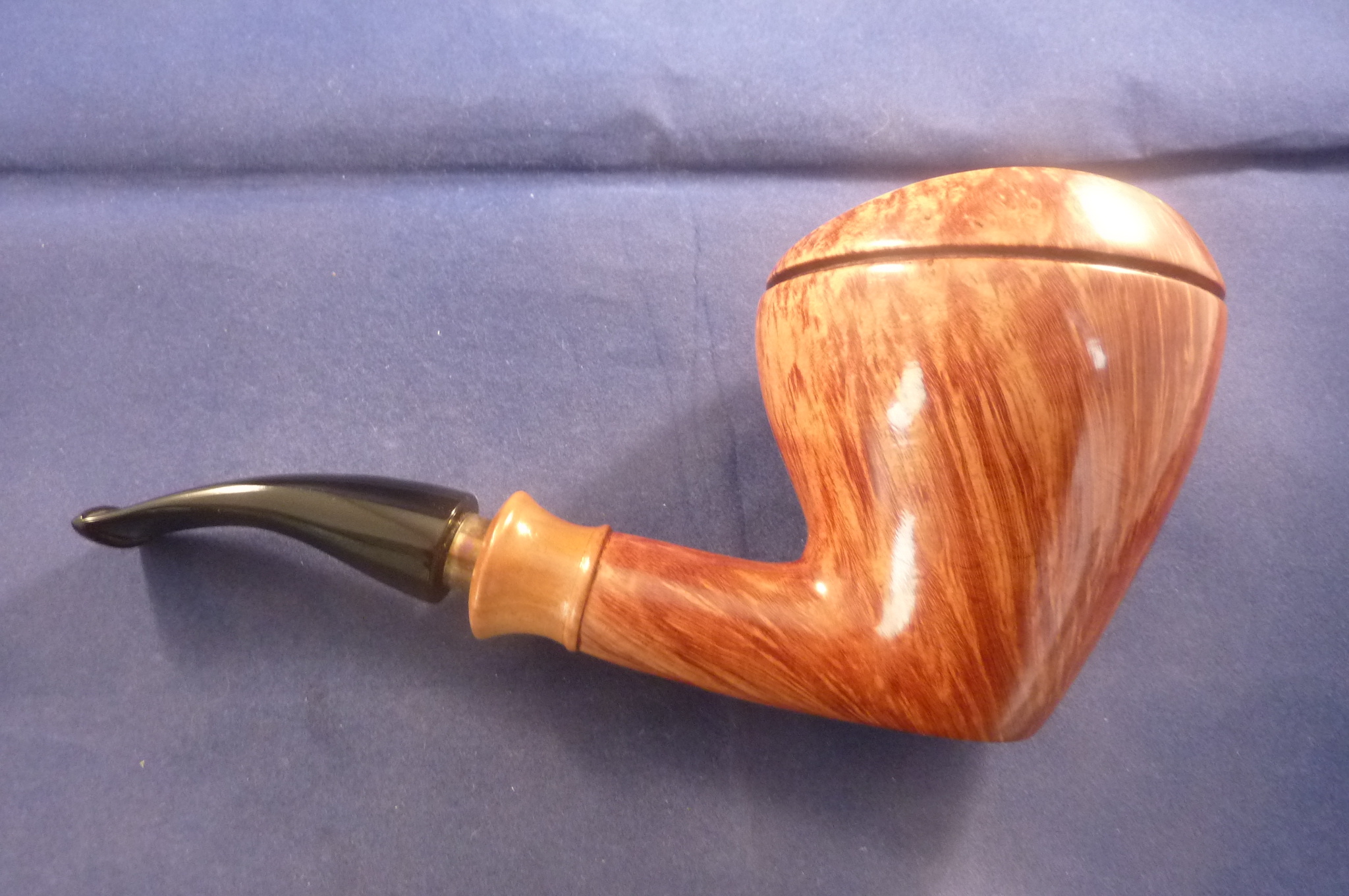 This is a brand new briar pipe in a light finish made by L'Anatra in Italy. This Italian pipe has really great colours and grains. Acrylic mouthpiece, 9 mm. filter.