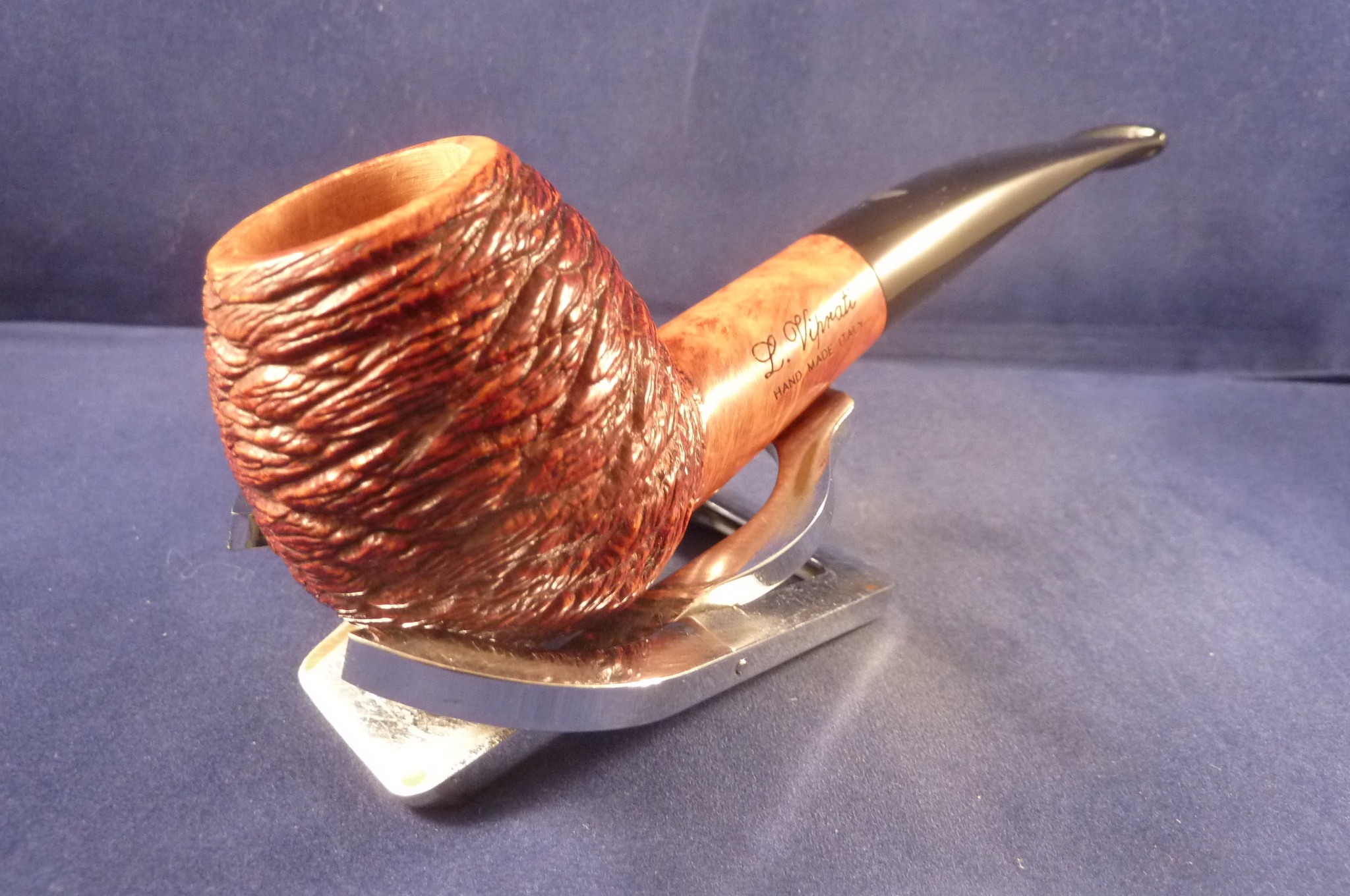 This is a brand new pipe made by Luigi Viprati in Italy. Beautiful hand made rusticated briar pipe. Black acrylic mouthpiece, 9 mm. filter.