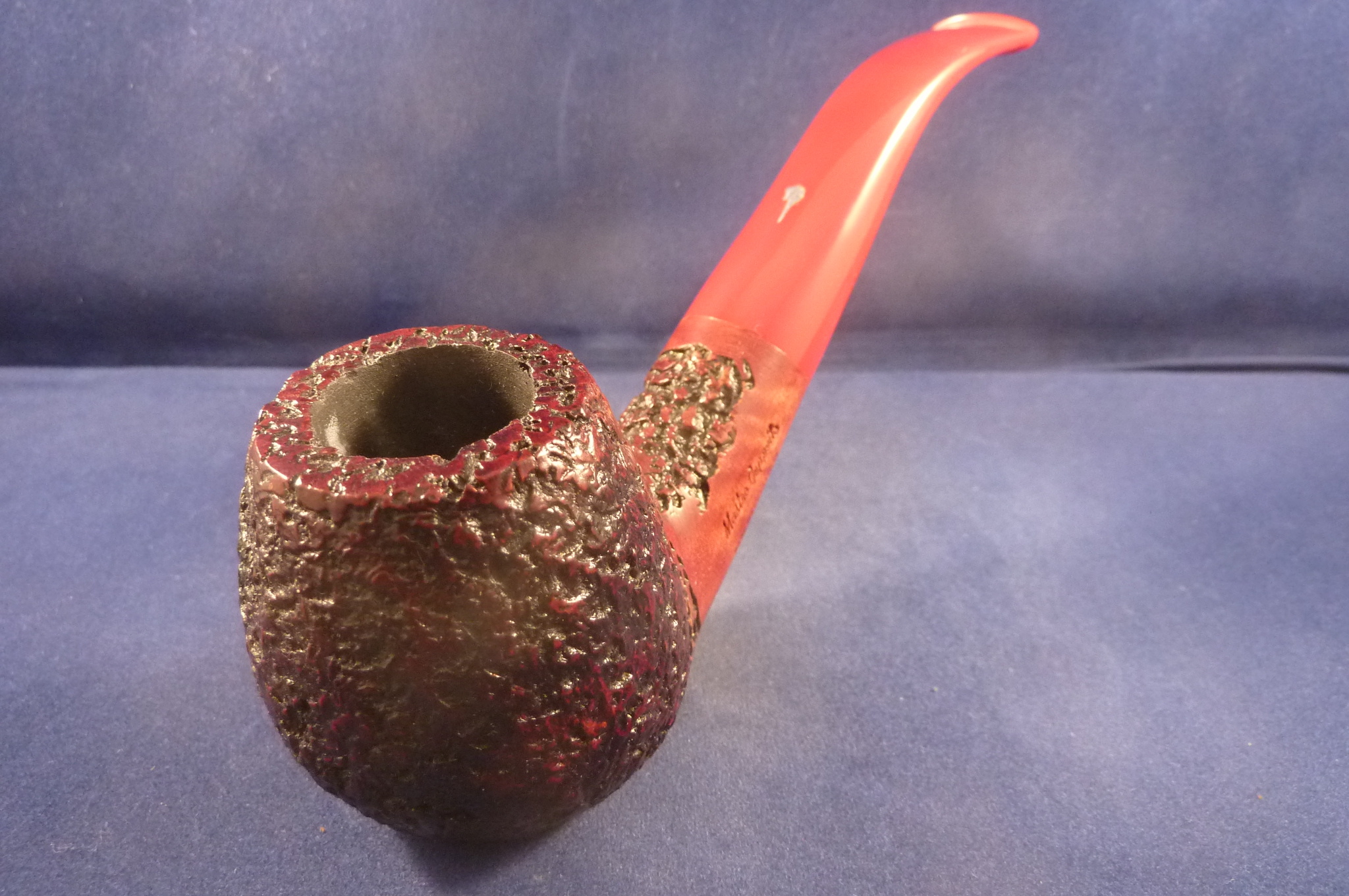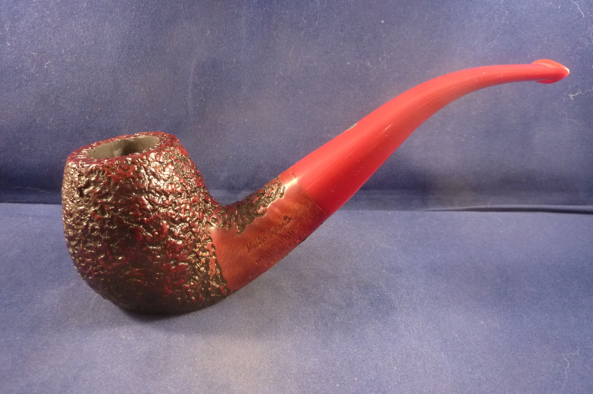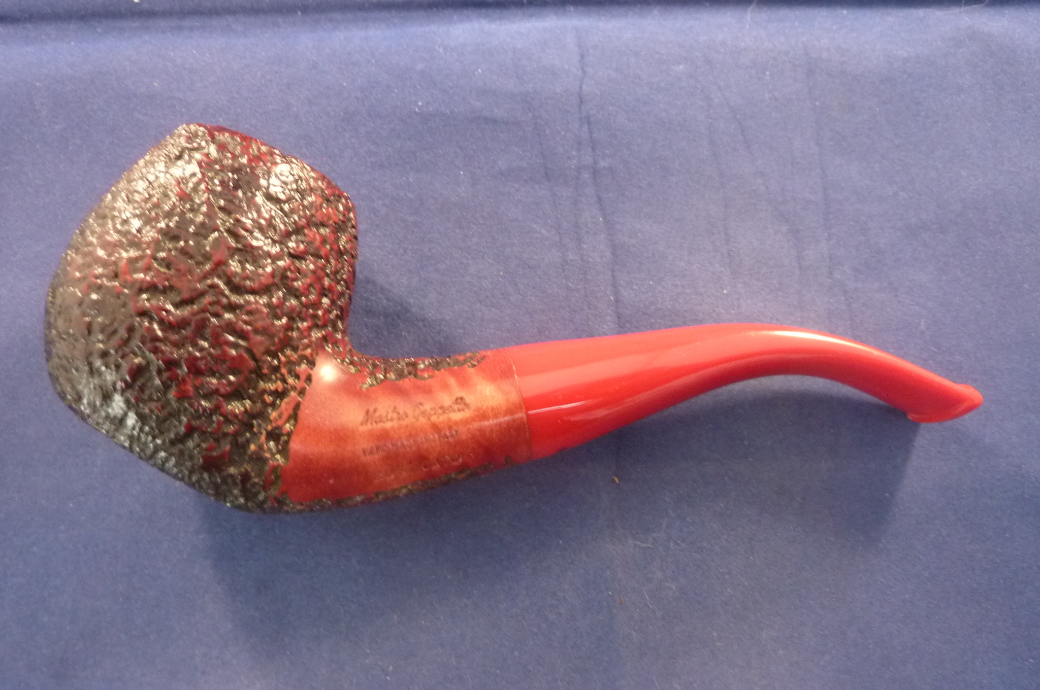 This is a brand new pipe made by Mastro Geppetto in Italy. This rusticated briar pipe has an acrylic mouthpiece with a Pinokkio design, 9 mm. filter. Mastro Geppetto is made by Ser Jacopo.