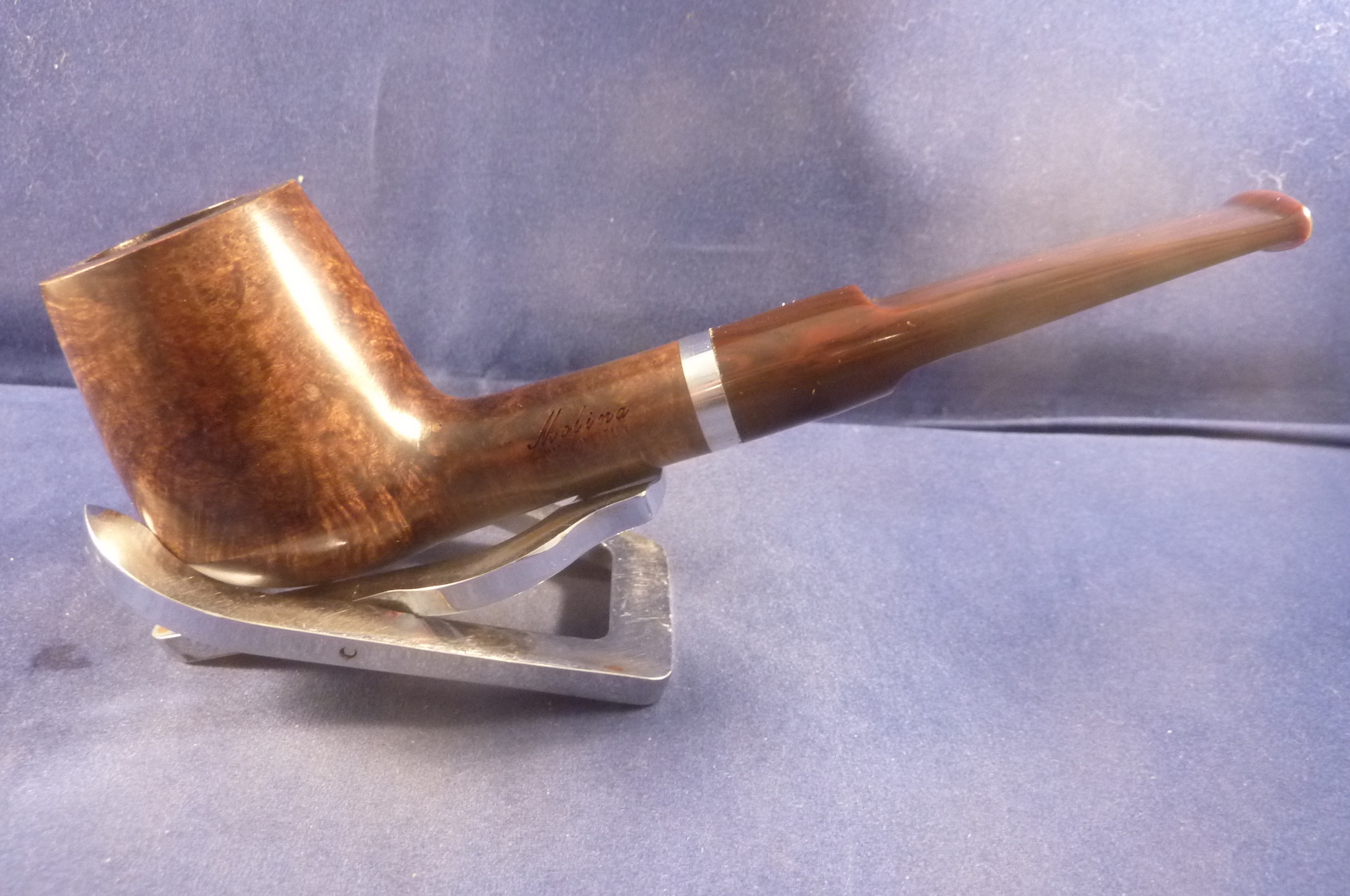 Smooth briar pipe with a chrome ring made by Molina in Italy. Acrylic black mouthpiece, 9 mm. filter.
