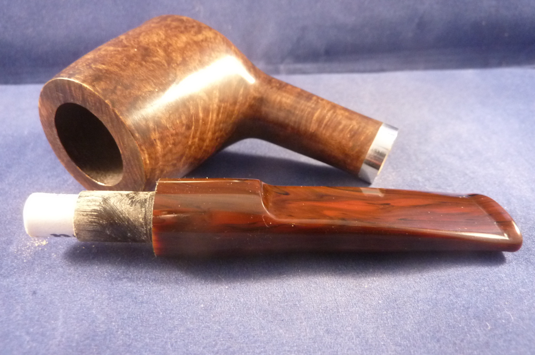 This is a brand new pipe made by Cesare Barontini in Italy. Beautiful briar pipe in an elegant shape. Brown acrylic mouthpiece, 9 mm. filter.