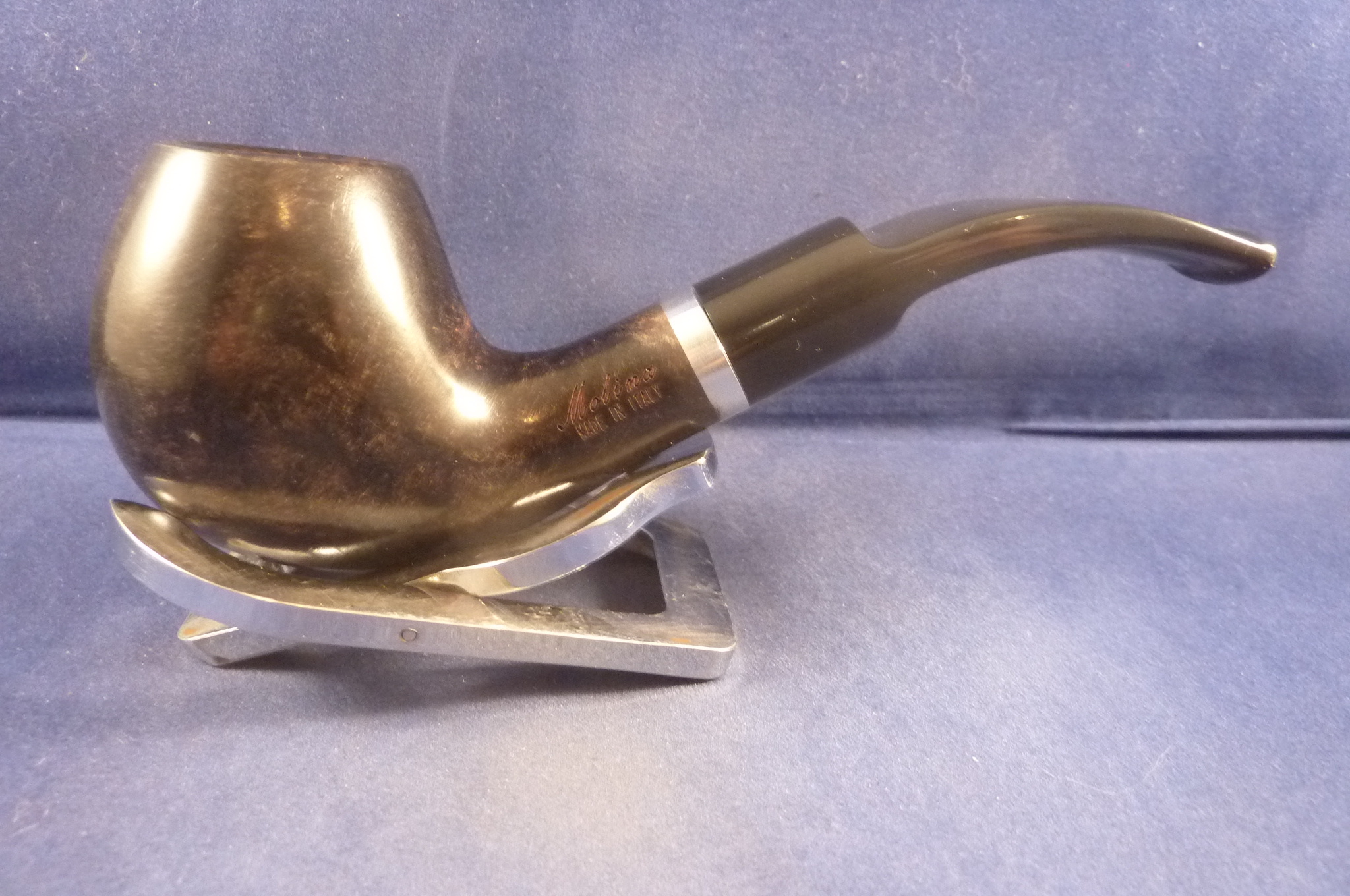 Smooth briar pipe with a chrome ring made by Molina in Italy. Acrylic black mouthpiece, 9 mm. filter.