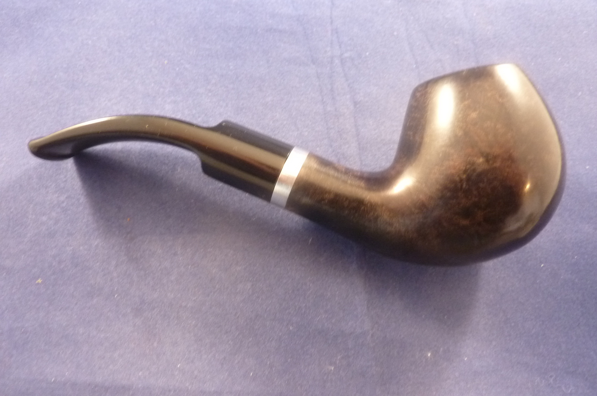 Beautiful Irish briar pipe with sterling silver applications. This black pipe has a beautiful shape. Fishtail mouthpiece, without filter.