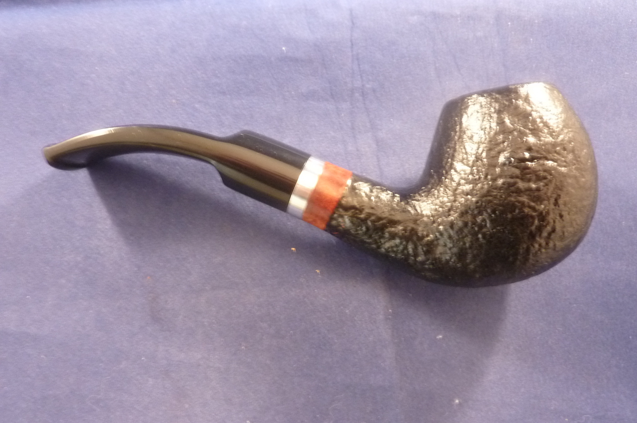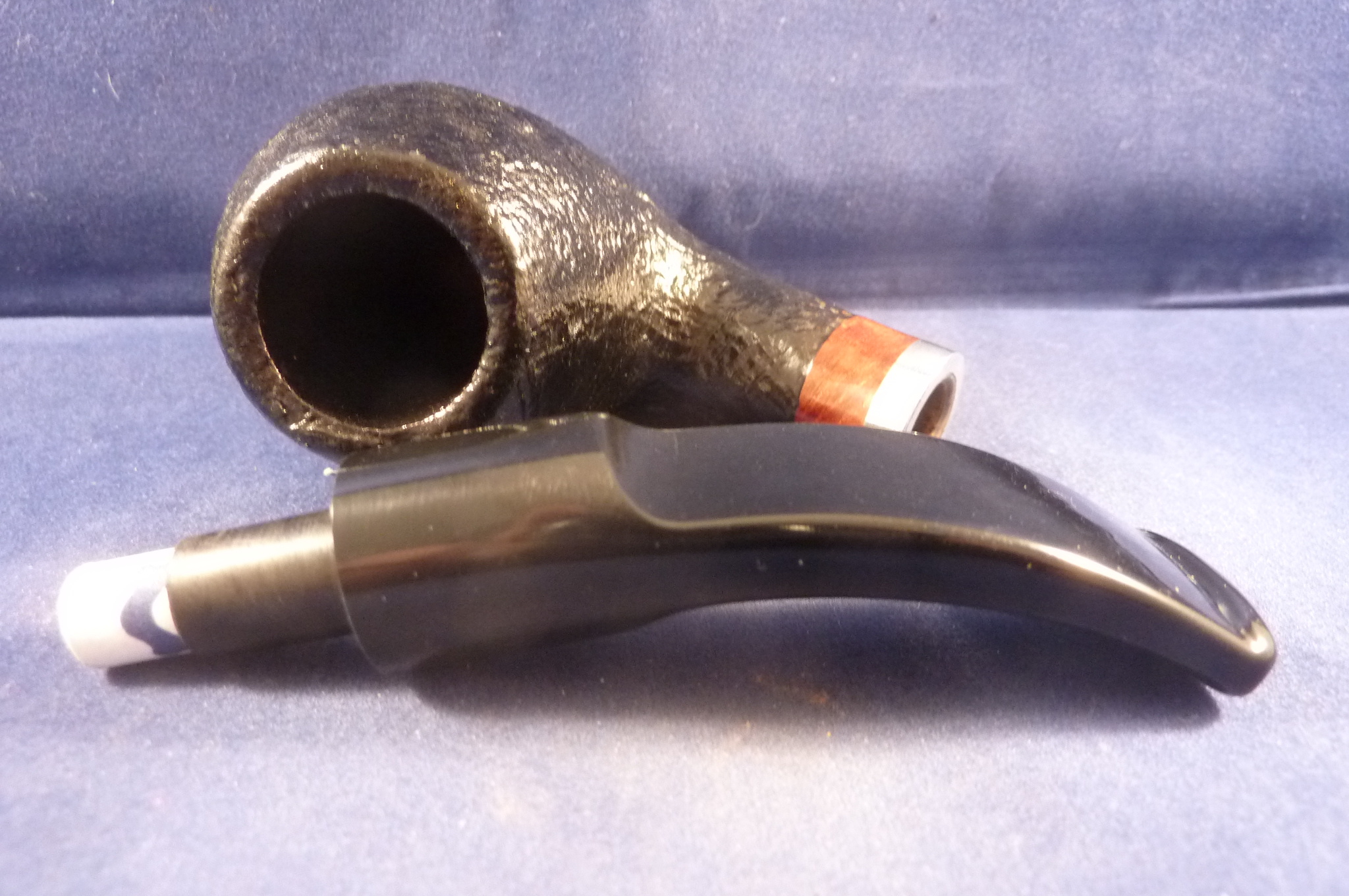 Sandblasted briar pipe with a chrome ring made by Molina in Italy. Acrylic black mouthpiece, 9 mm. filter.
