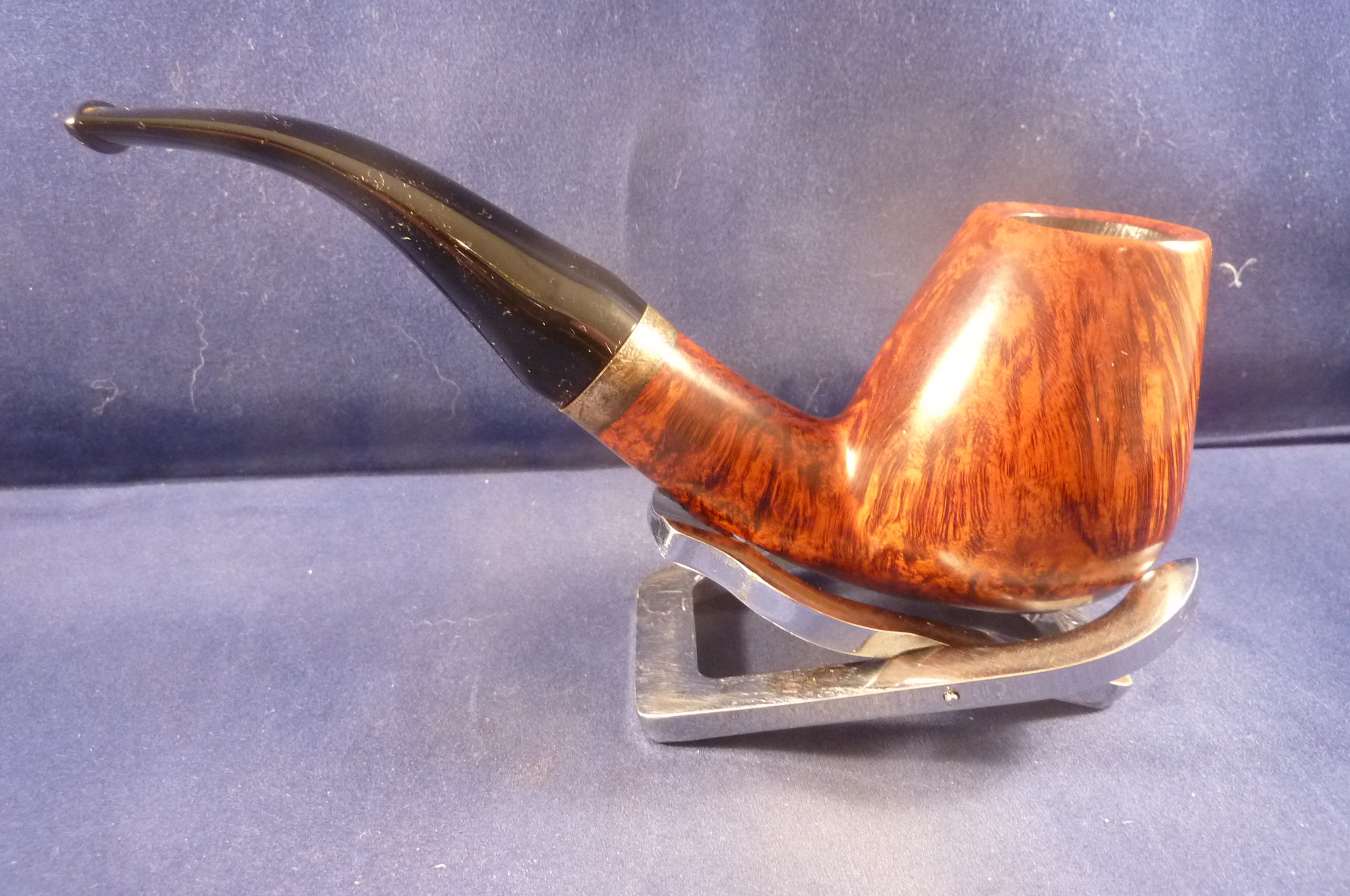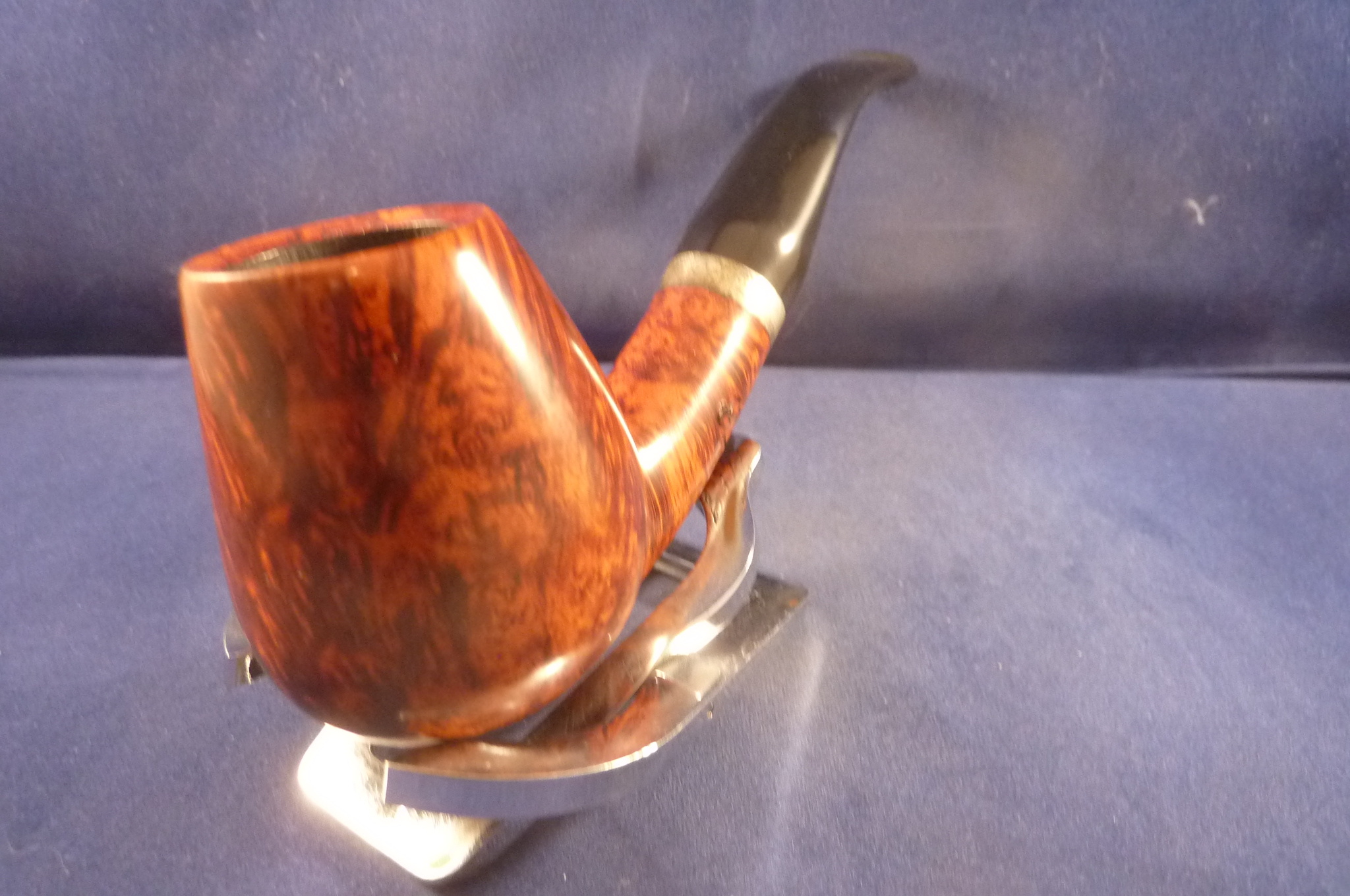 This is a brand new pipe made by Peder Jeppesen in Denmark. He is one of the youngest pipe makers with a lot of experience. This briar pipe has a beautiful colour and design. This pipe has an acrylic mouthpiece. 9 mm. filter.