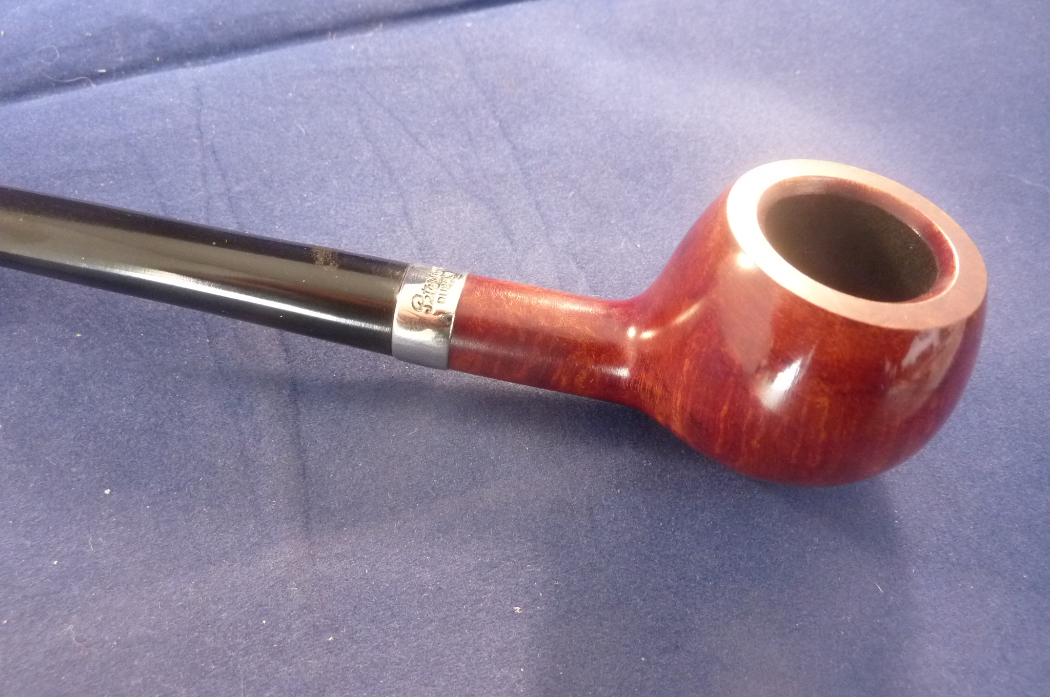 Beautiful briar pipe made by Peterson in Ireland. Sterling silver band. P-Lip mouthpiece, with 9 mm. filter.
