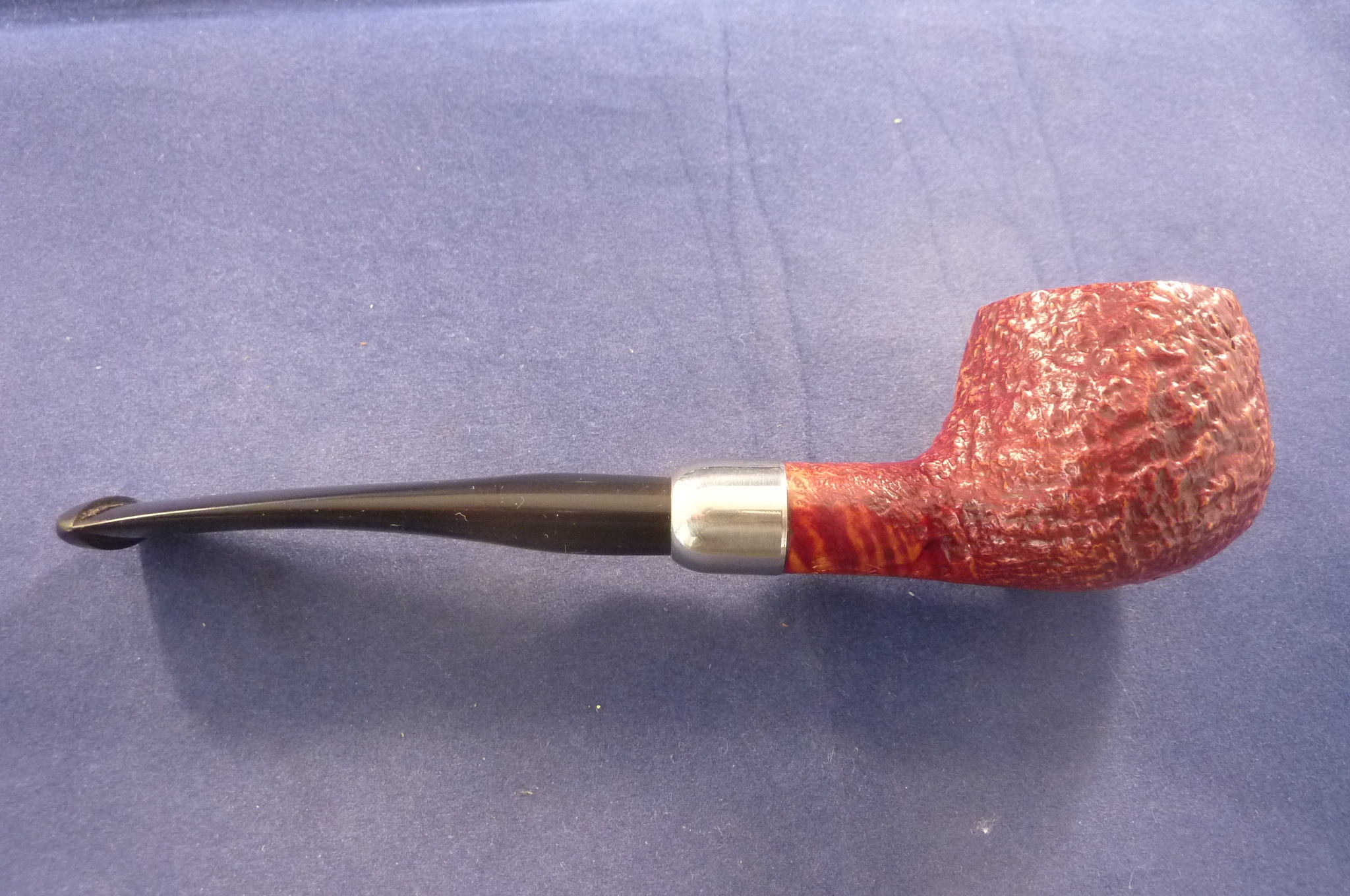 Beautiful briar pipe in a sandblasteded finish with a nickel mount, made by Peterson in Ireland. The pipe has a black fishtail mouthpiece, without filter.