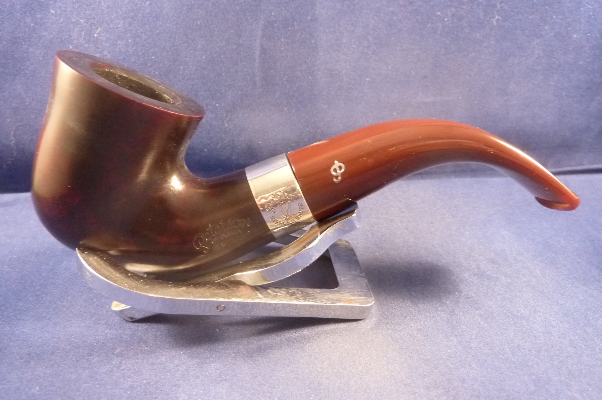 Beautiful Irish, smooth brown briar smoking pipe with a metal ring. Cumberland acrylic fishtail mouthpiece, with 9 mm. filter.
