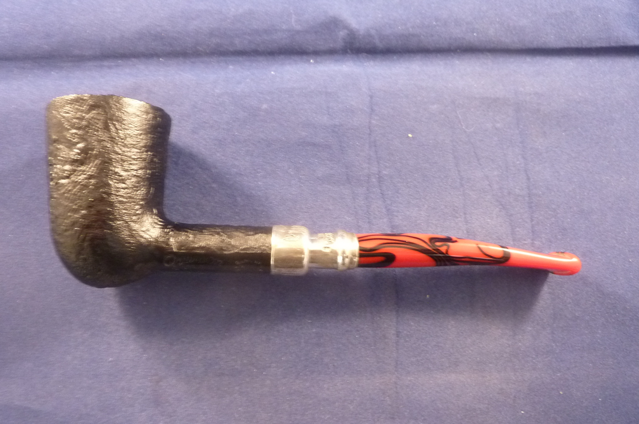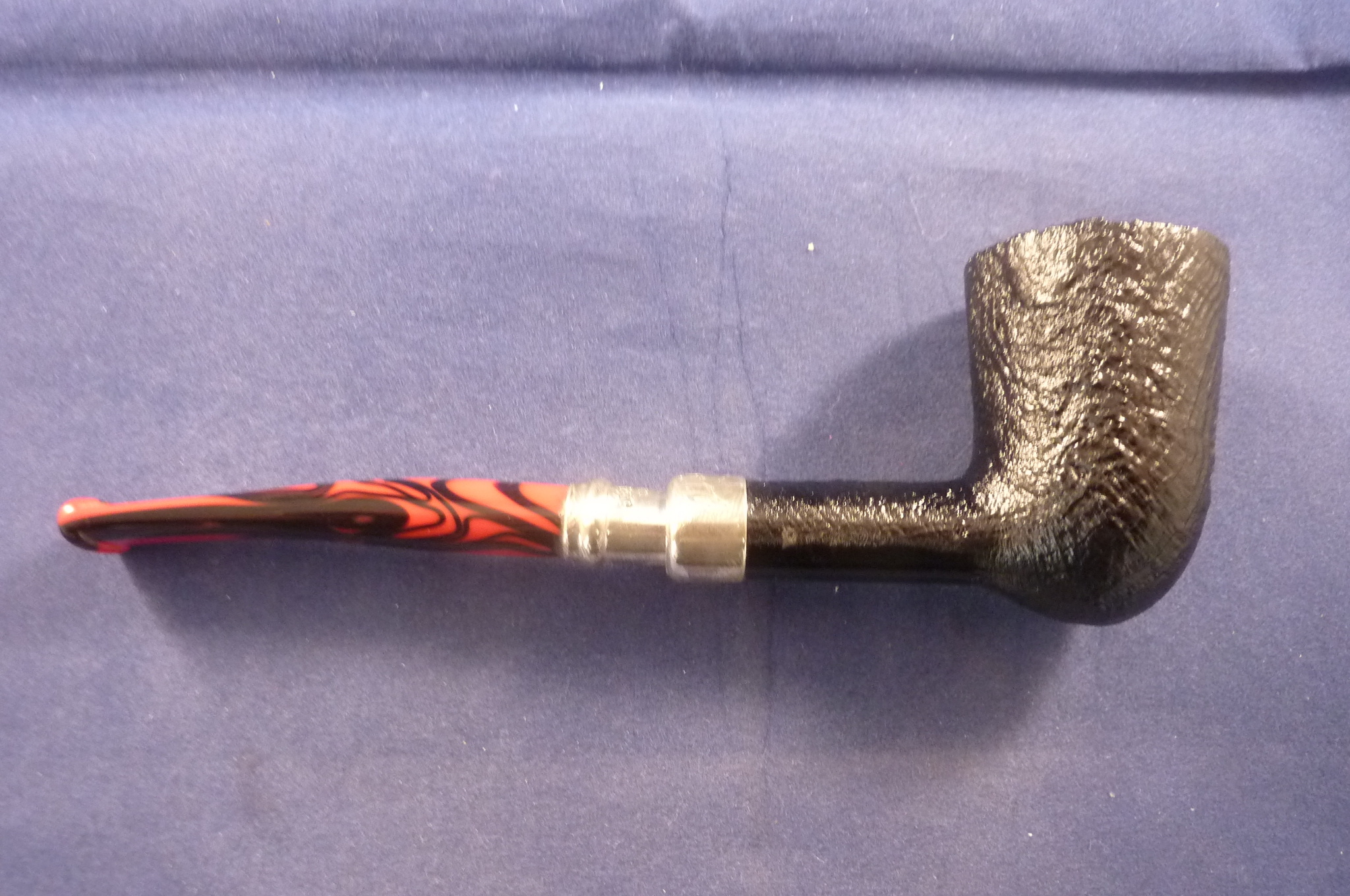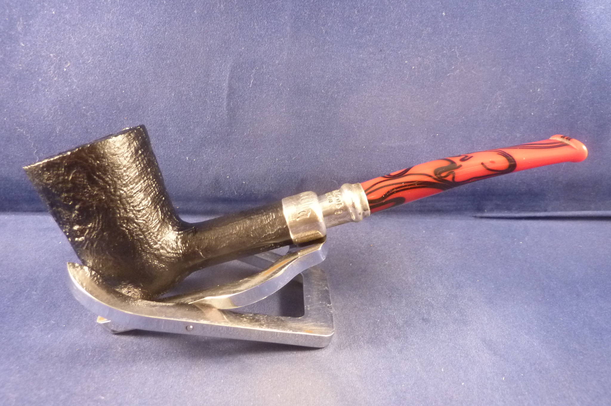 Beautiful Irish briar pipe with sterling silver applications. This black pipe has a beautiful shape. Fishtail mouthpiece, without filter.