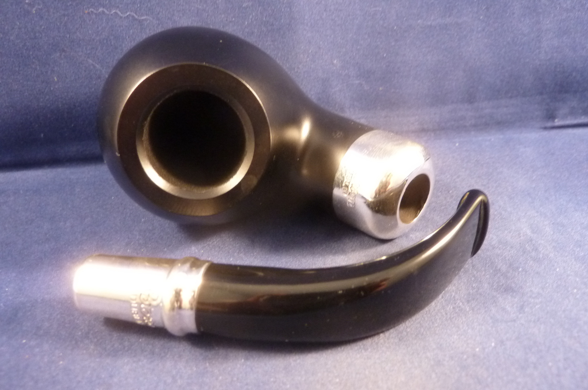 The Peterson tradition has long been associated with the fine sterling silver detail of our pipes. The Peterson Spigot is characterised by a sterling silver covering on the tapered end of the mouthpiece which compliments the sterling silver band of the pipe. The Spigot style evolved from the practice of soldiers in earlier centuries who repaired broken pipes by sliding a used cartridge case over the shank and reinserting the mouthpiece. In this unique spigot finished pipe, Peterson craftsmanship perfect the union of finest quality briar and precious metals. The silver is spun to shape and then fitted to the pipe. The craftsmanship, created with only a lathe and chisel as basic tools, is the finest in the industry. Normally fitted with fishtail mouthpiece.