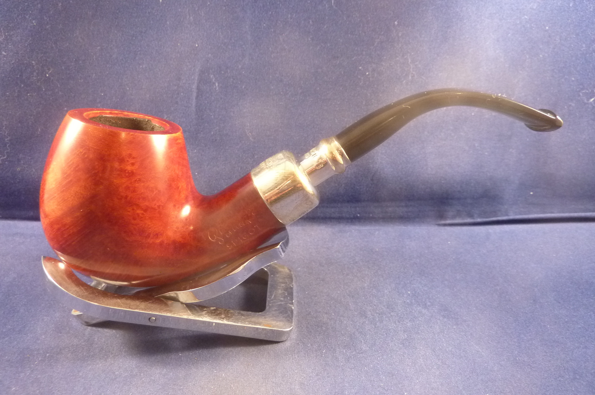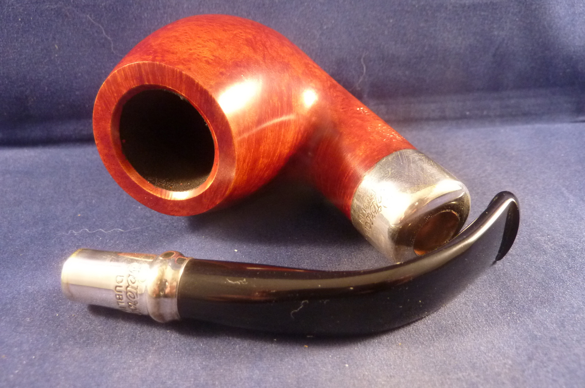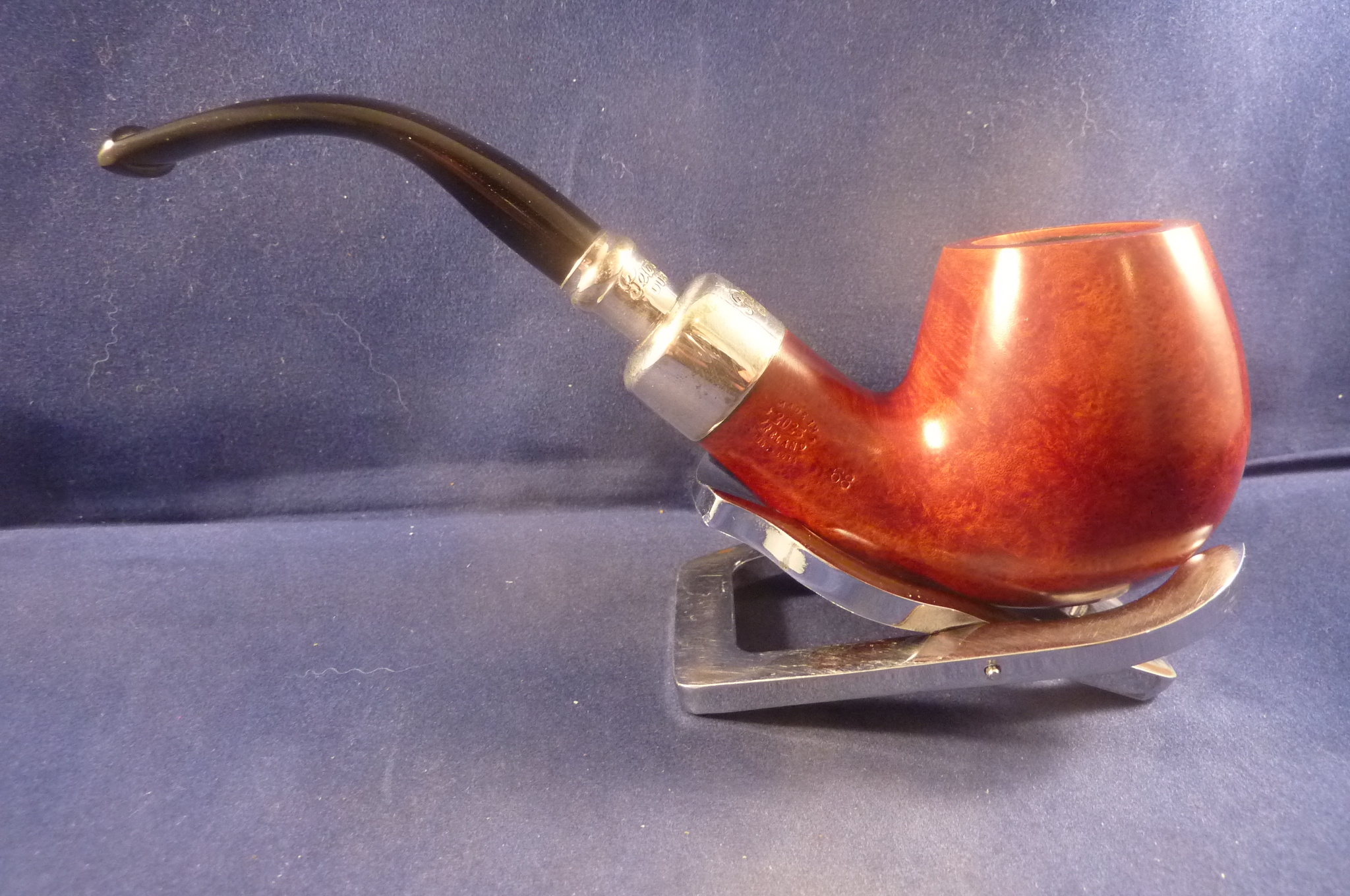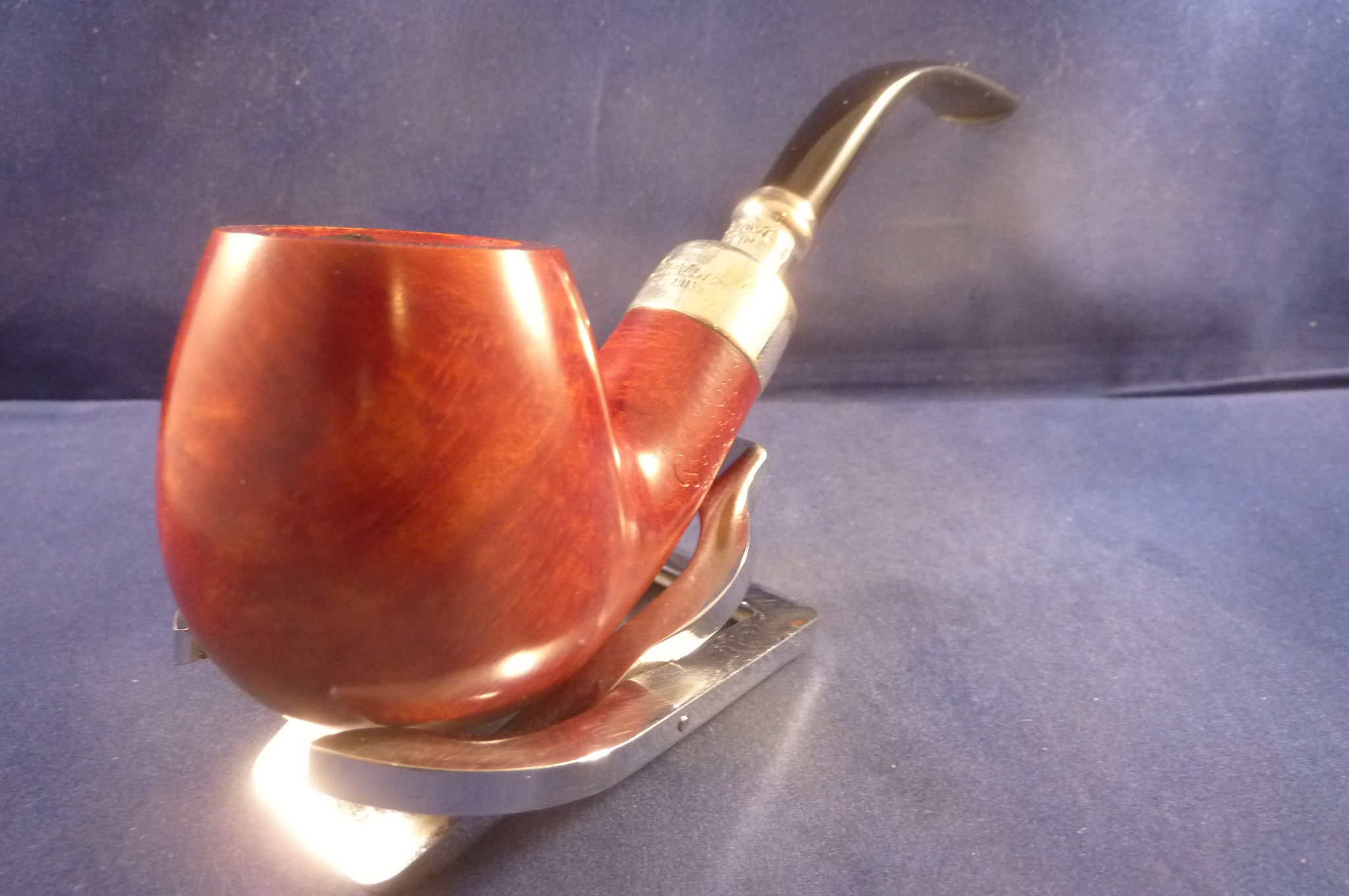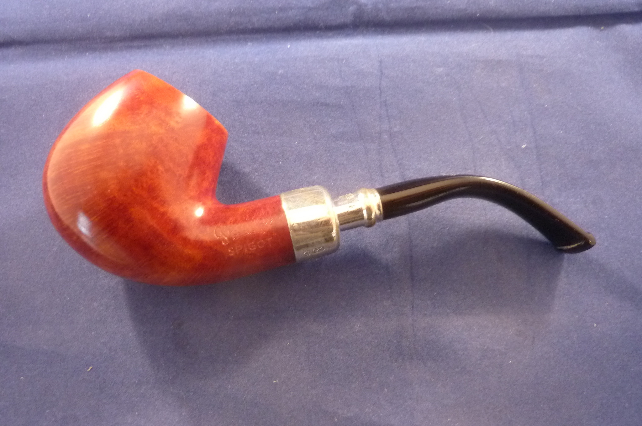 The Peterson tradition has long been associated with the fine sterling silver detail of our pipes. The Peterson Spigot is characterised by a sterling silver covering on the tapered end of the mouthpiece which compliments the sterling silver band of the pipe. The Spigot style evolved from the practice of soldiers in earlier centuries who repaired broken pipes by sliding a used cartridge case over the shank and reinserting the mouthpiece. In this unique spigot finished pipe, Peterson craftsmanship perfect the union of finest quality briar and precious metals. The silver is spun to shape and then fitted to the pipe. The craftsmanship, created with only a lathe and chisel as basic tools, is the finest in the industry. Normally fitted with fishtail mouthpiece.