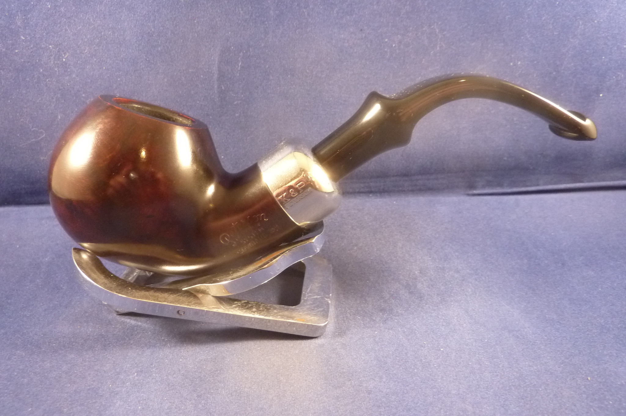 A high quality briar pipe. Specially selected fine quality bowls mounted with a hallmarked nickel band and an army style mouthpiece. P-Lip mouthpiece, 9 mm. filter.