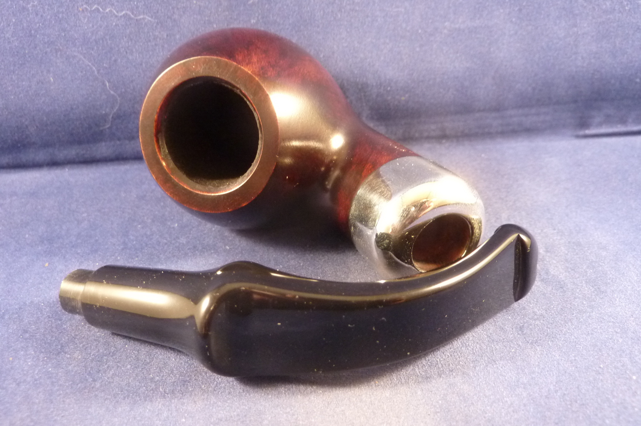 A high quality briar pipe. Specially selected fine quality bowls mounted with a hallmarked nickel band and an army style mouthpiece. P-Lip mouthpiece, without filter.